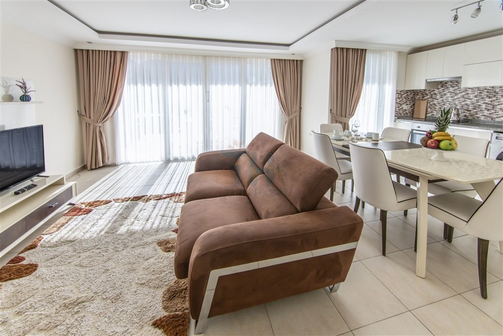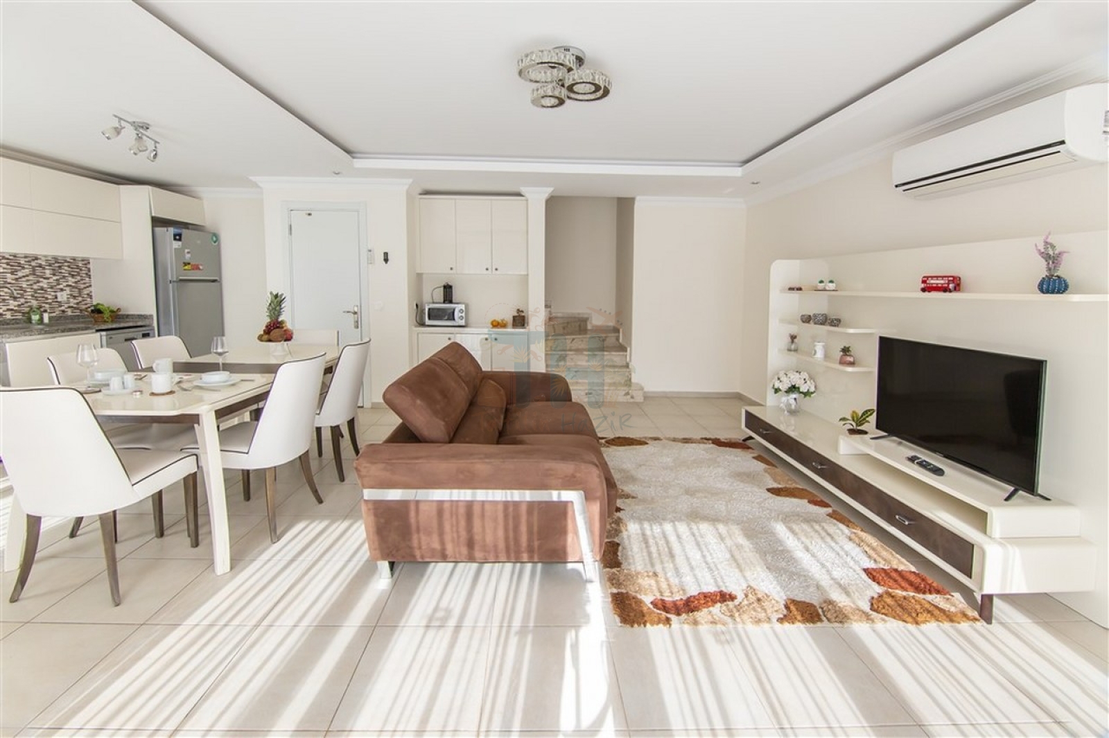 Modern Tasarım: Zarif iç dekorasyon, modern mobilyalar ve kaliteli malzemelerle tasarlanmış geniş bir yaşam alanı.