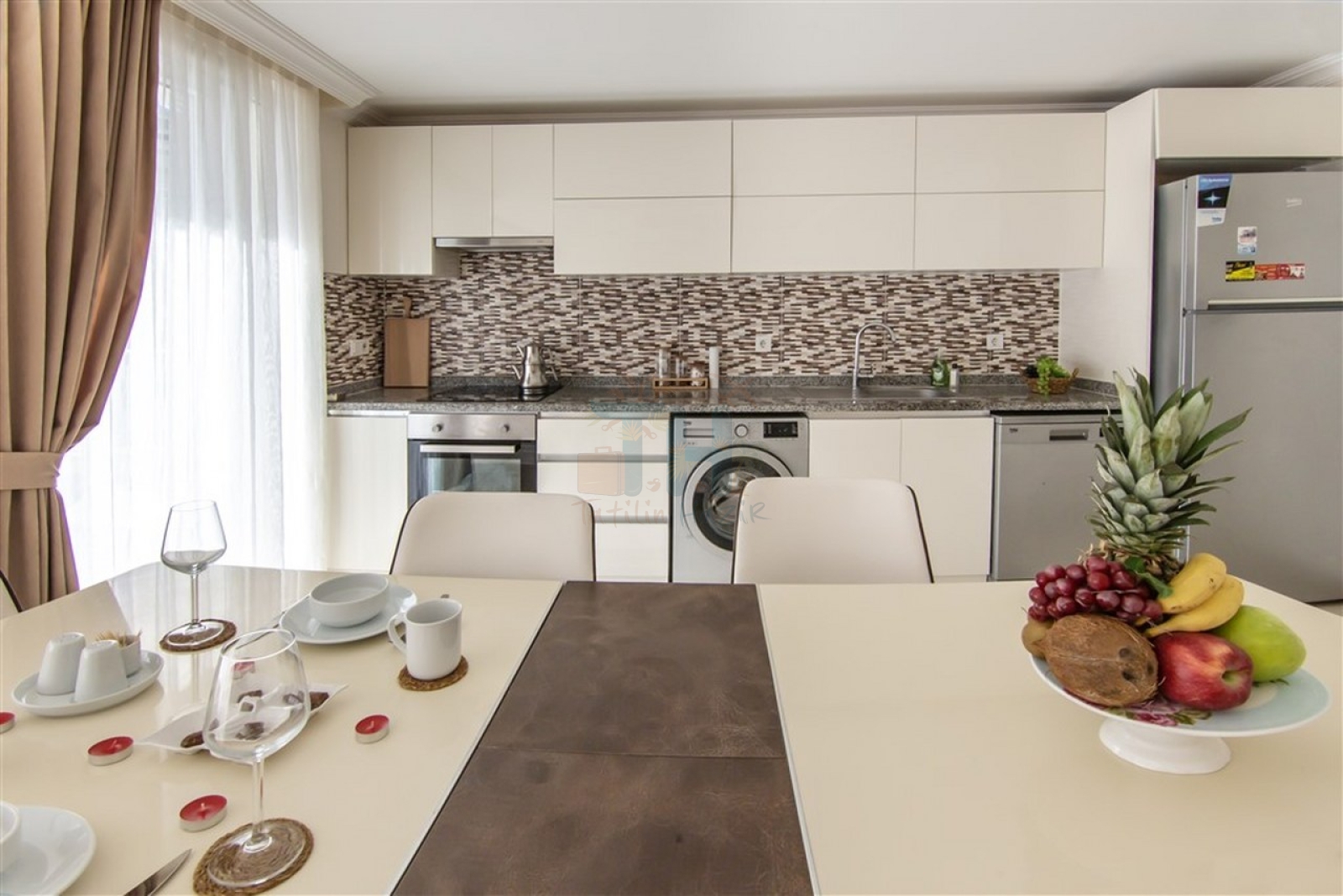 Tam Donanımlı Mutfak: İhtiyacınız olan her şeye sahip, şık mutfak.