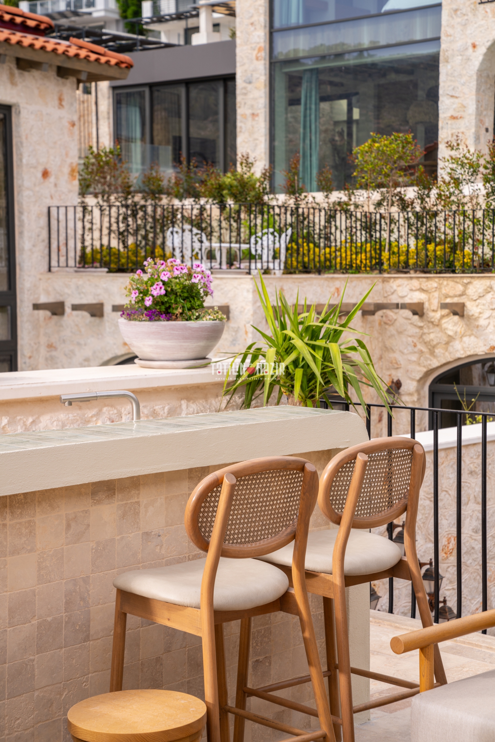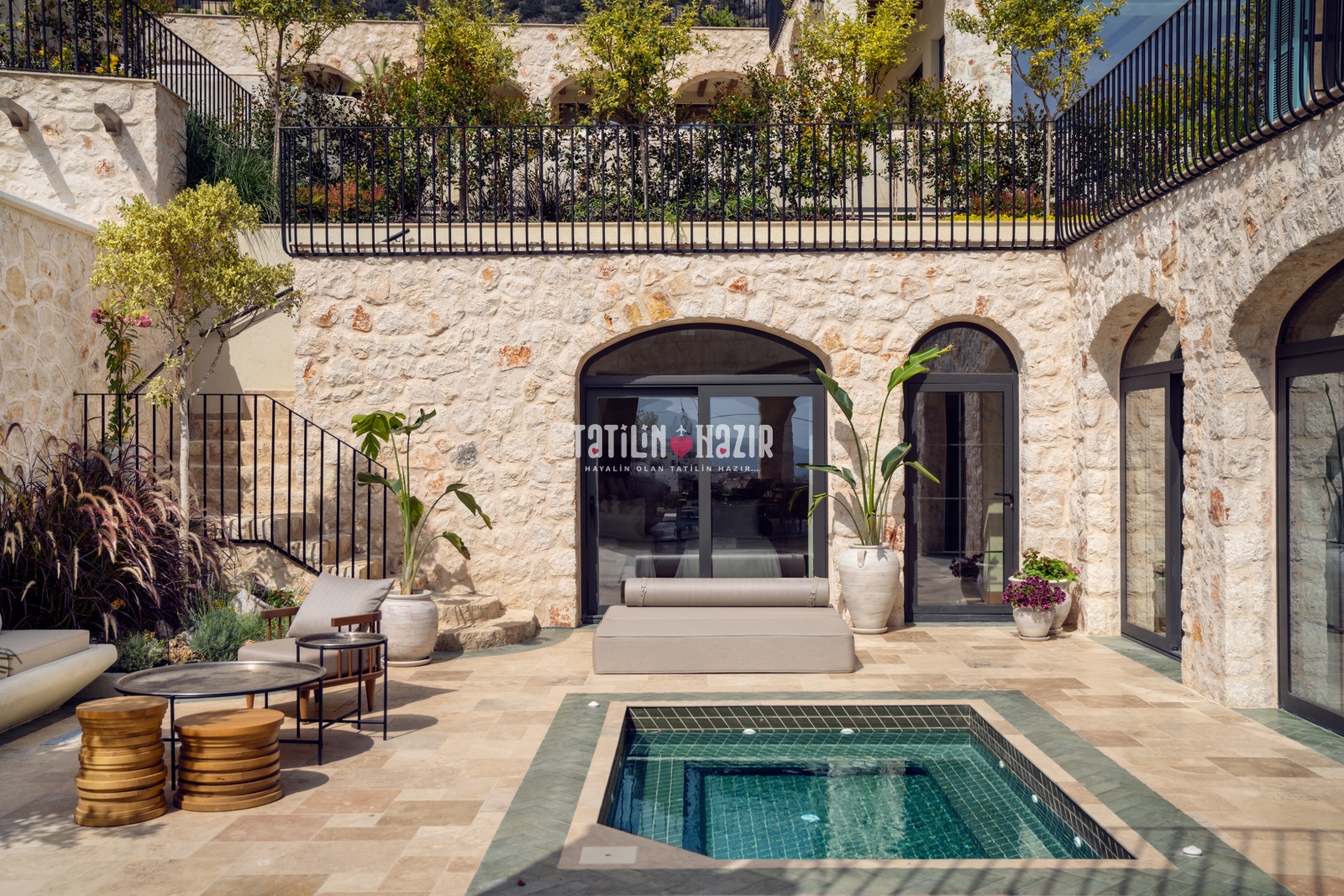 Kalkan Kızıltaş’ta yer alan bu 5 yatak odalı jakuzili villa, 10 kişilik konaklama kapasitesiyle kalabalık aileler ve arkadaş grupları için hem konforlu hem de lüks bir tatil deneyimi sunuyor.