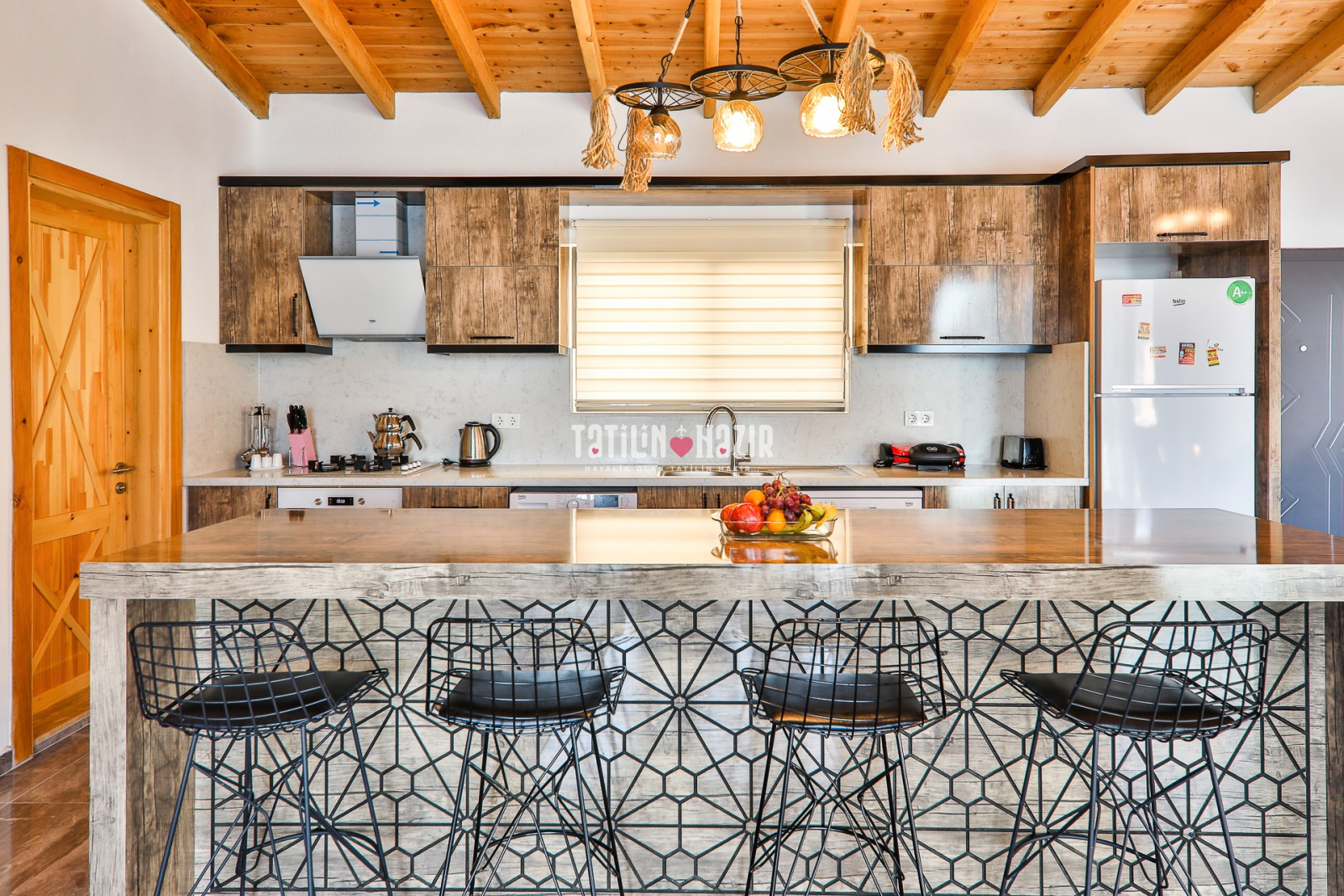 Tam donanımlı mutfak (tabak, çatal, bıçak ve tüm mutfak ekipmanları)