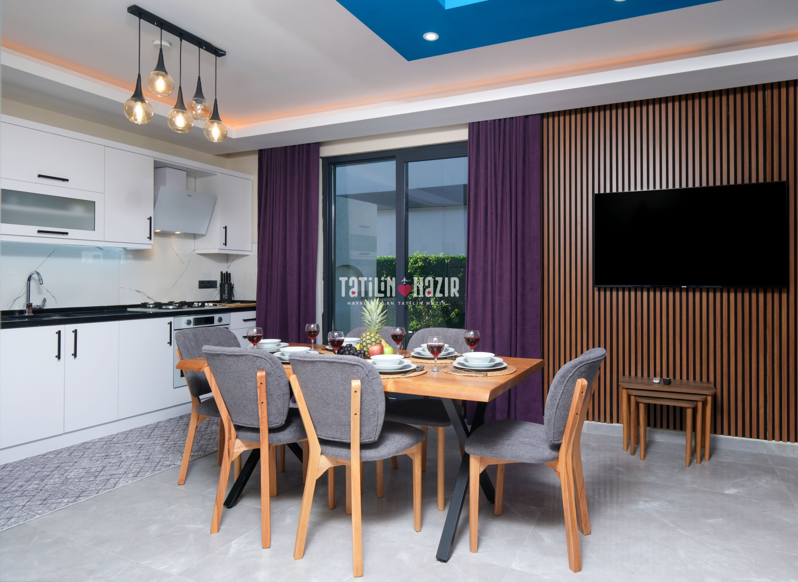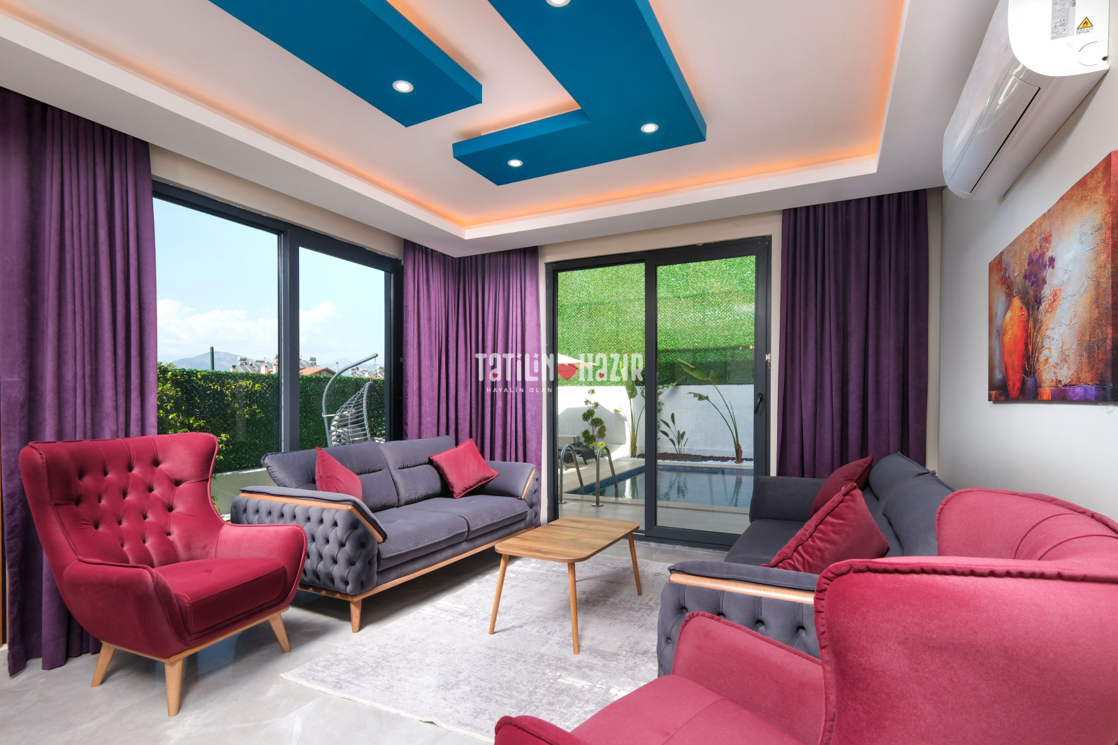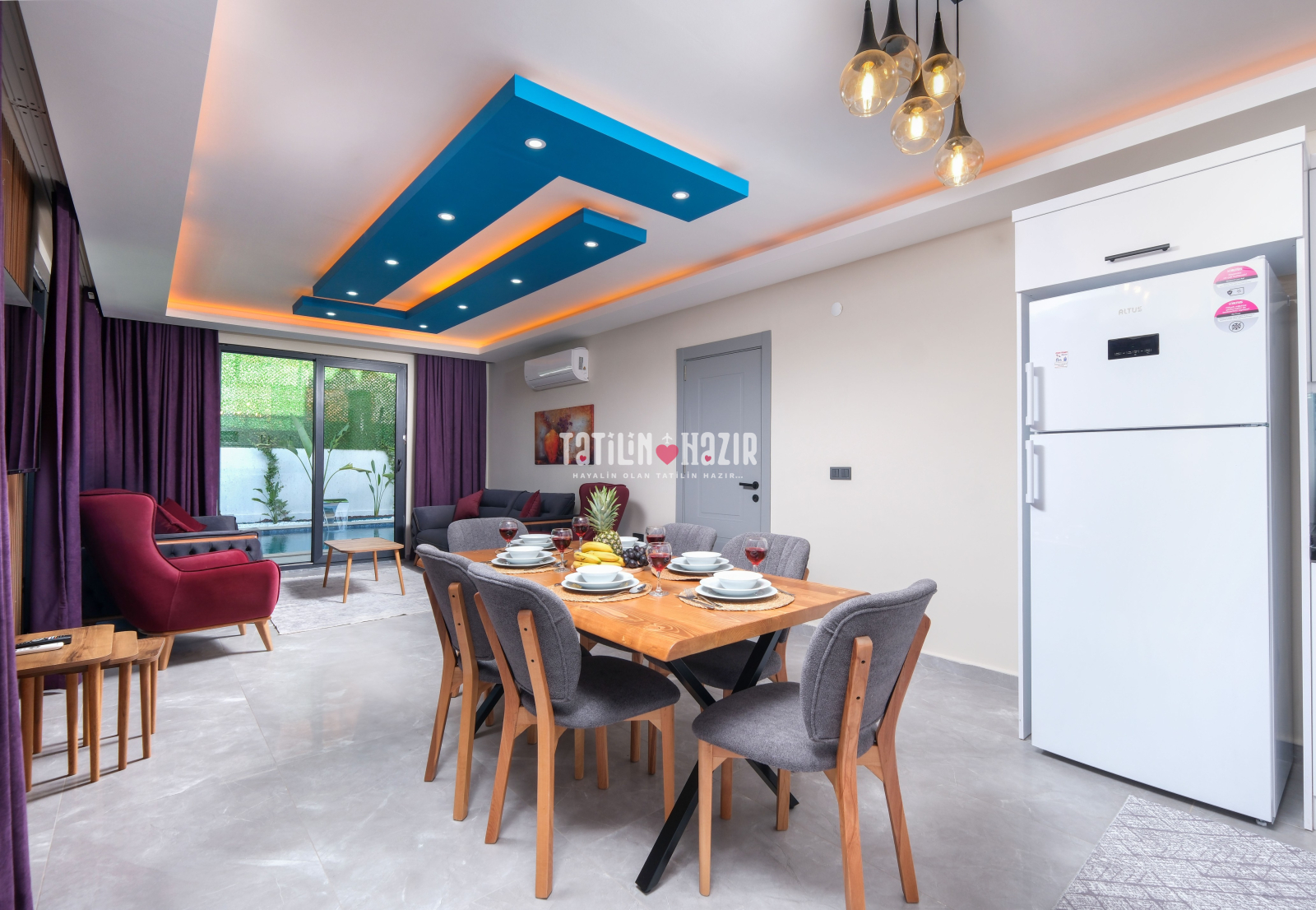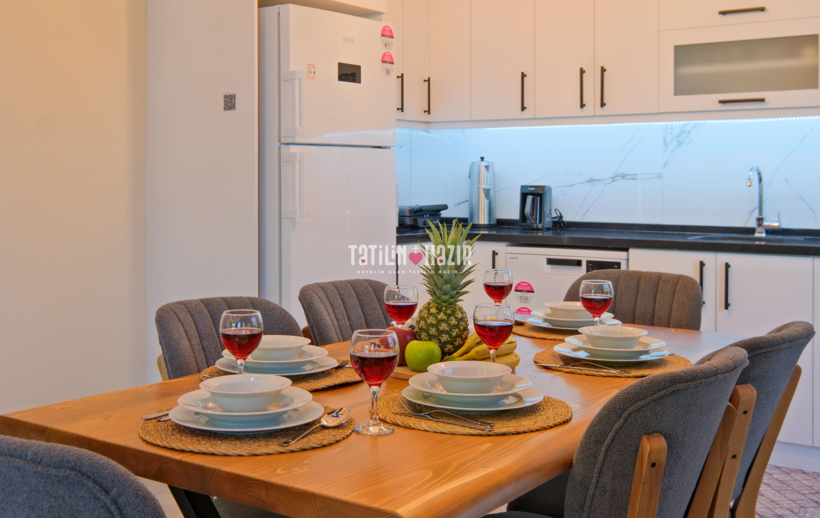 Kaliteli mobilyalar, zevkli iç dekorasyon ve rahat yaşam alanlarıyla elit bir tatil sizi bekliyor! 🖼️✨