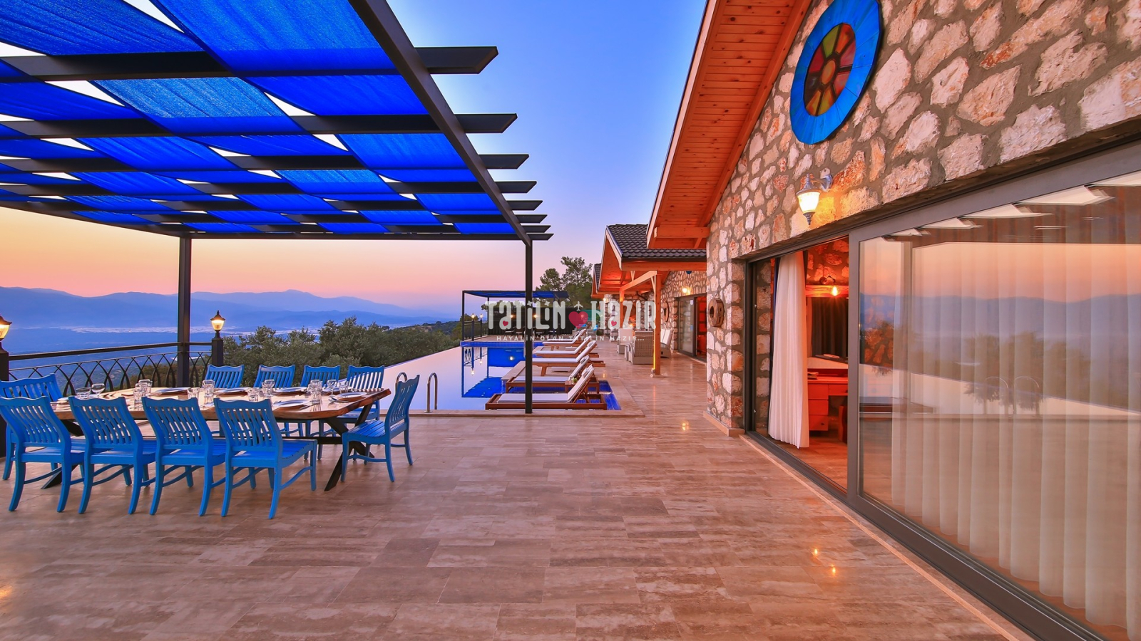 Villa, doğal bir ortamda ve sessiz bir bölgede ve Doğayla İç İçe Konumdadır . Kalkan' ın sakin ve huzurlu ortamında, doğa ile iç içe bir tatil deneyimi.