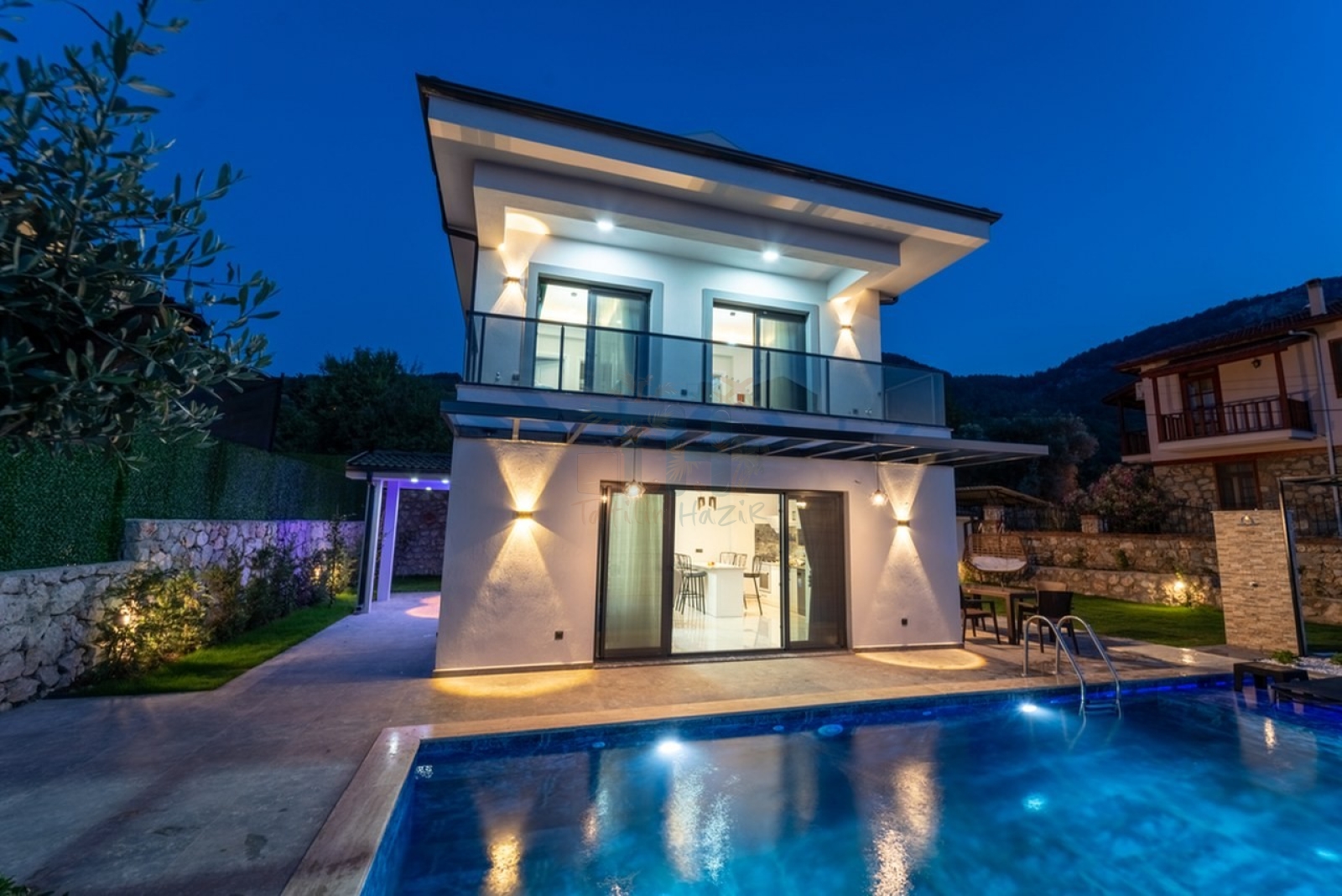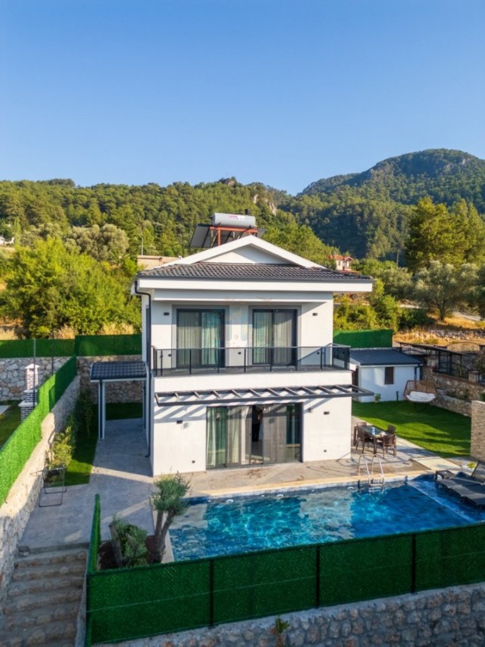 Fethiyenin doğal güzellikleri arasında yer alan bu 3 yatak odalı jakuzili villa, 6 kişilik konaklama kapasitesiyle hem rahat hem de lüks bir tatil fırsatı sunuyor. Özel yüzme havuzunuzda güneşin tadını çıkarabilir, günün yorgunluğunu ana yatak odasında bulunan jakuzinizde atabilirsiniz. Villa, tam donanımlı bir mutfak, geniş bir oturma alanı ve modern dekorasyonuyla sizi bekliyor.