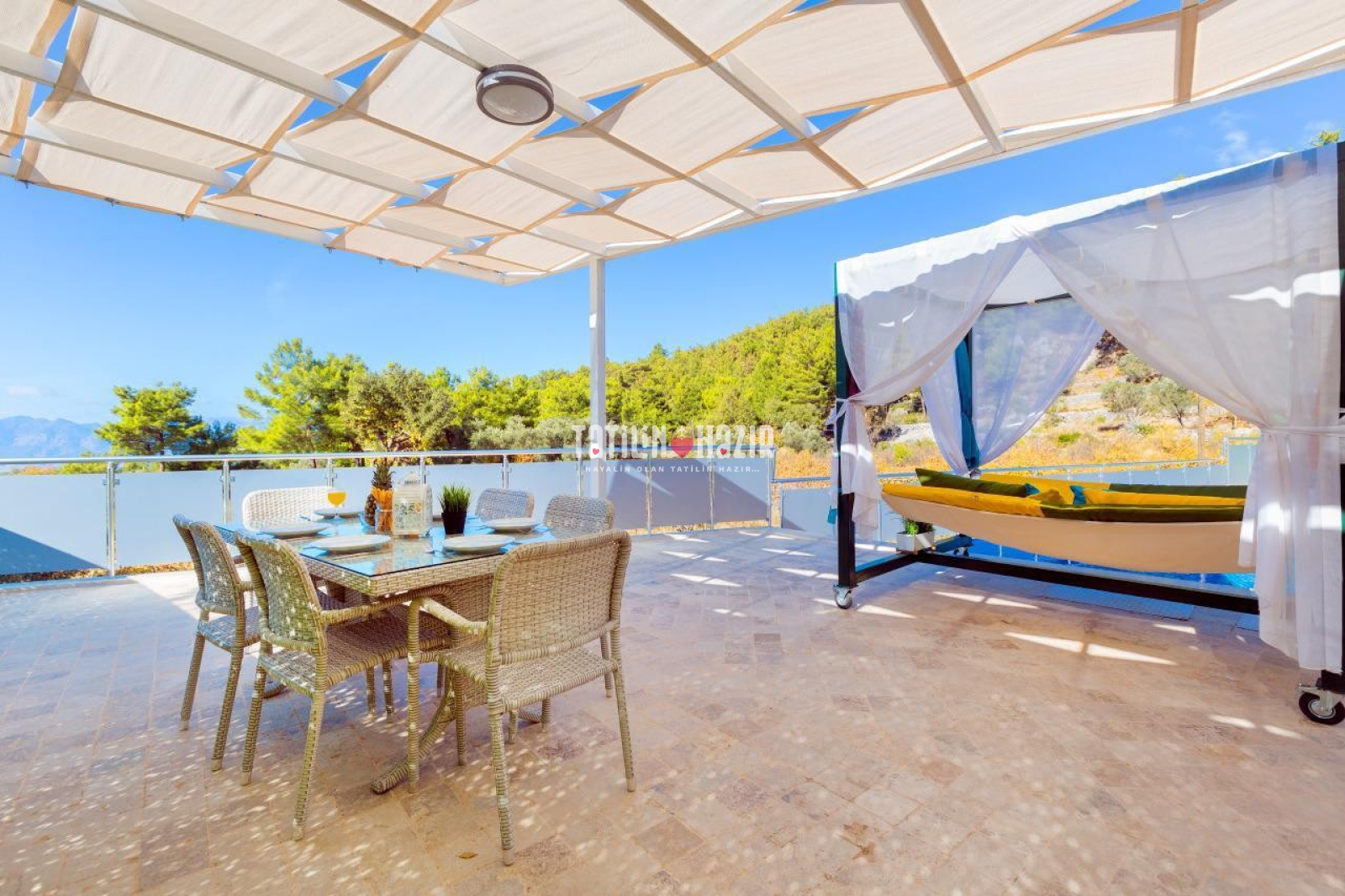 Villa, doğal bir ortamda ve Doğayla İç İçe Konumdadır . Kalkan' ın sakin ve huzurlu ortamında, doğa ile iç içe bir tatil deneyimi.
