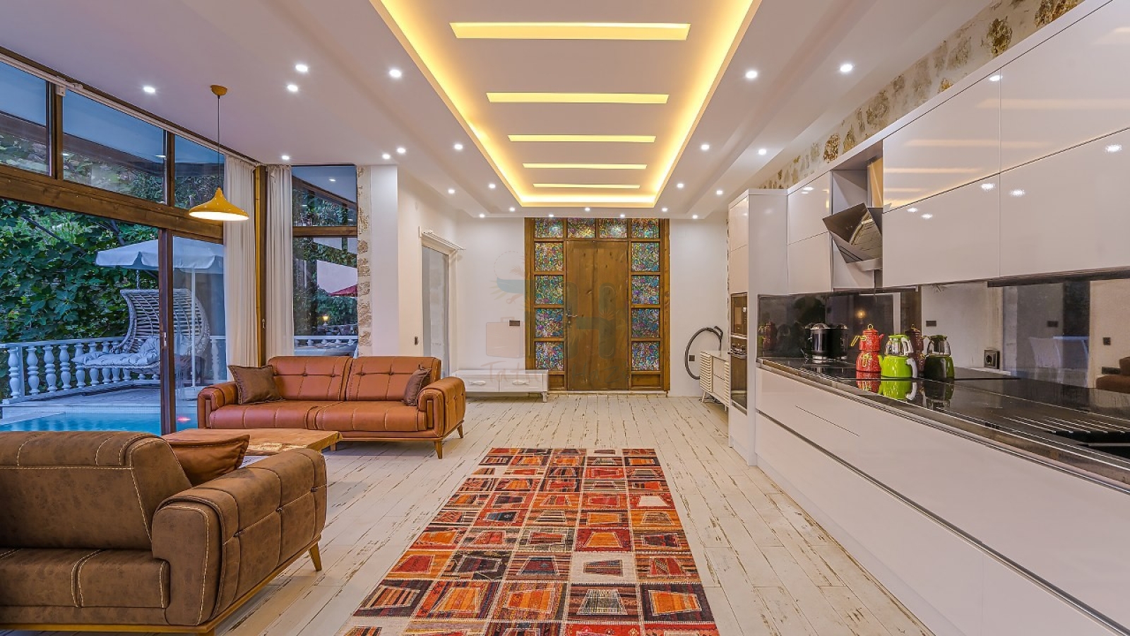 Modern Tasarım: Zarif iç dekorasyon, modern mobilyalar ve kaliteli malzemelerle tasarlanmış geniş bir yaşam alanı.
