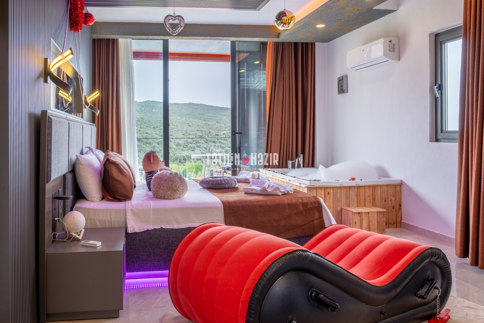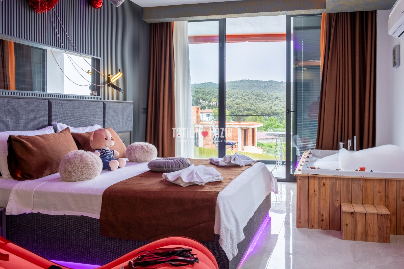 panaromik bir deniz manzarası sizi beklemektedir Şehirden uzak, doğa içinde dinlendirici bir tatil için jakuzili odanızda rahatlayın. Sadece sizin kullanımınıza özel, tertemiz bir havuz ile yazın keyfini çıkarın. Zarif iç dekorasyon, modern mobilyalar ve kaliteli malzemelerle tasarlanmış geniş bir yaşam alanı.