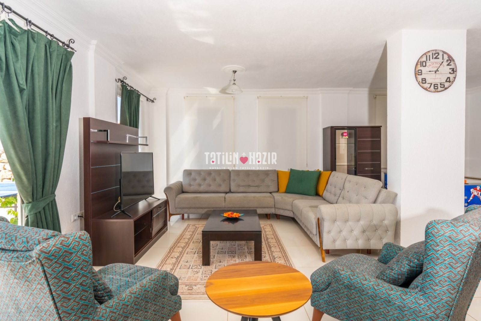 Kaş'ın doğal güzellikleri arasında yer alan bu 4 yatak odalı jakuzili villa, 8 kişilik konaklama kapasitesiyle hem rahat hem de lüks bir tatil fırsatı sunuyor. Özel yüzme havuzunuzda güneşin tadını çıkarabilir, günün yorgunluğunu ana yatak odasında bulunan jakuzinizde atabilirsiniz. Villa, tam donanımlı bir mutfak, geniş bir oturma alanı ve modern dekorasyonuyla sizi bekliyor.