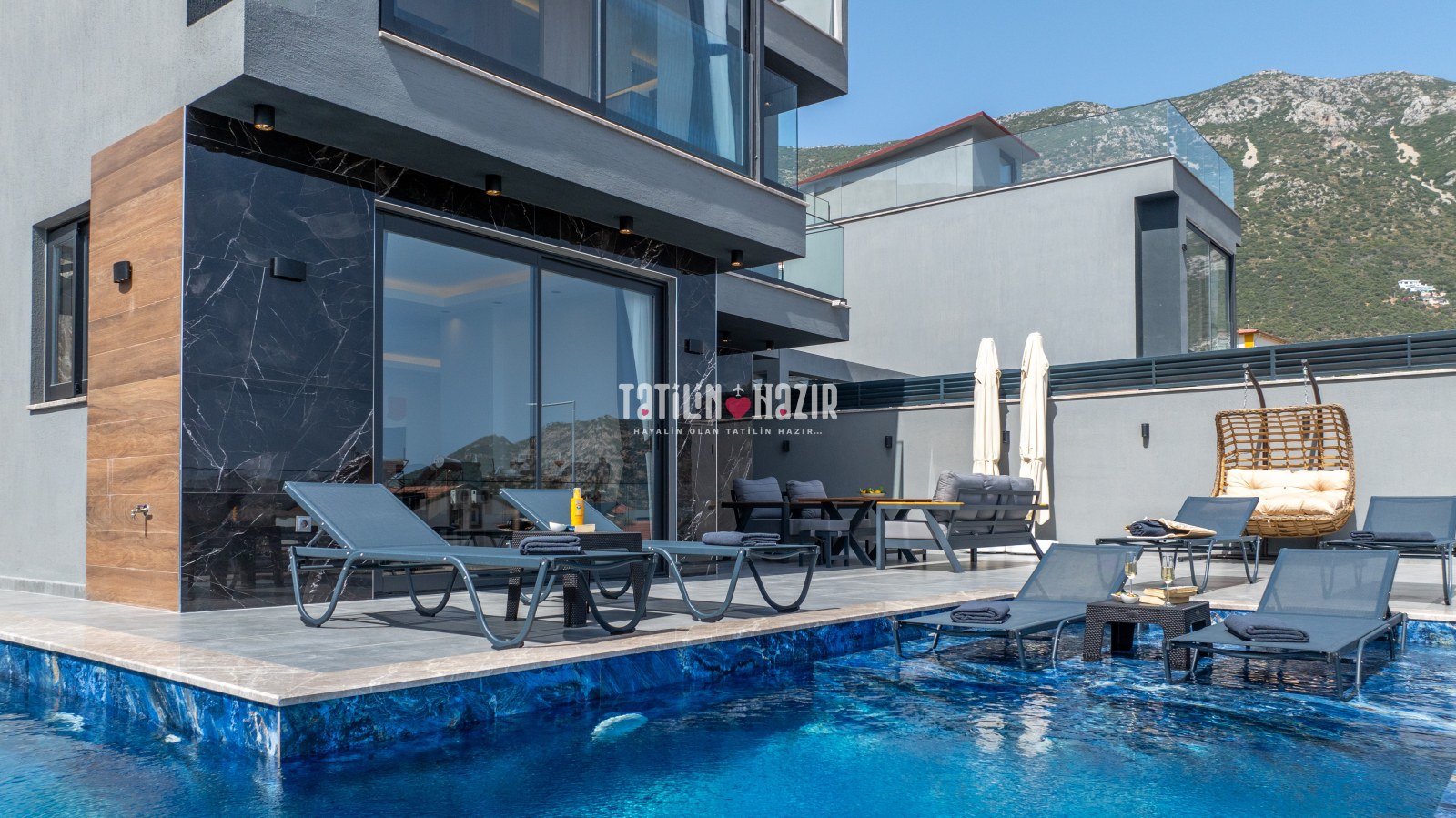 Kaş'ın doğal güzellikleri arasında yer alan bu 4 yatak odalı villa, 8 kişilik konaklama kapasitesiyle hem rahat hem de lüks bir tatil fırsatı sunuyor. Özel yüzme havuzunuzda güneşin tadını çıkarabilir, günün yorgunluğunu ana yatak odasında atabilirsiniz. Villa, tam donanımlı bir mutfak, geniş bir oturma alanı ve modern dekorasyonuyla sizi bekliyor.