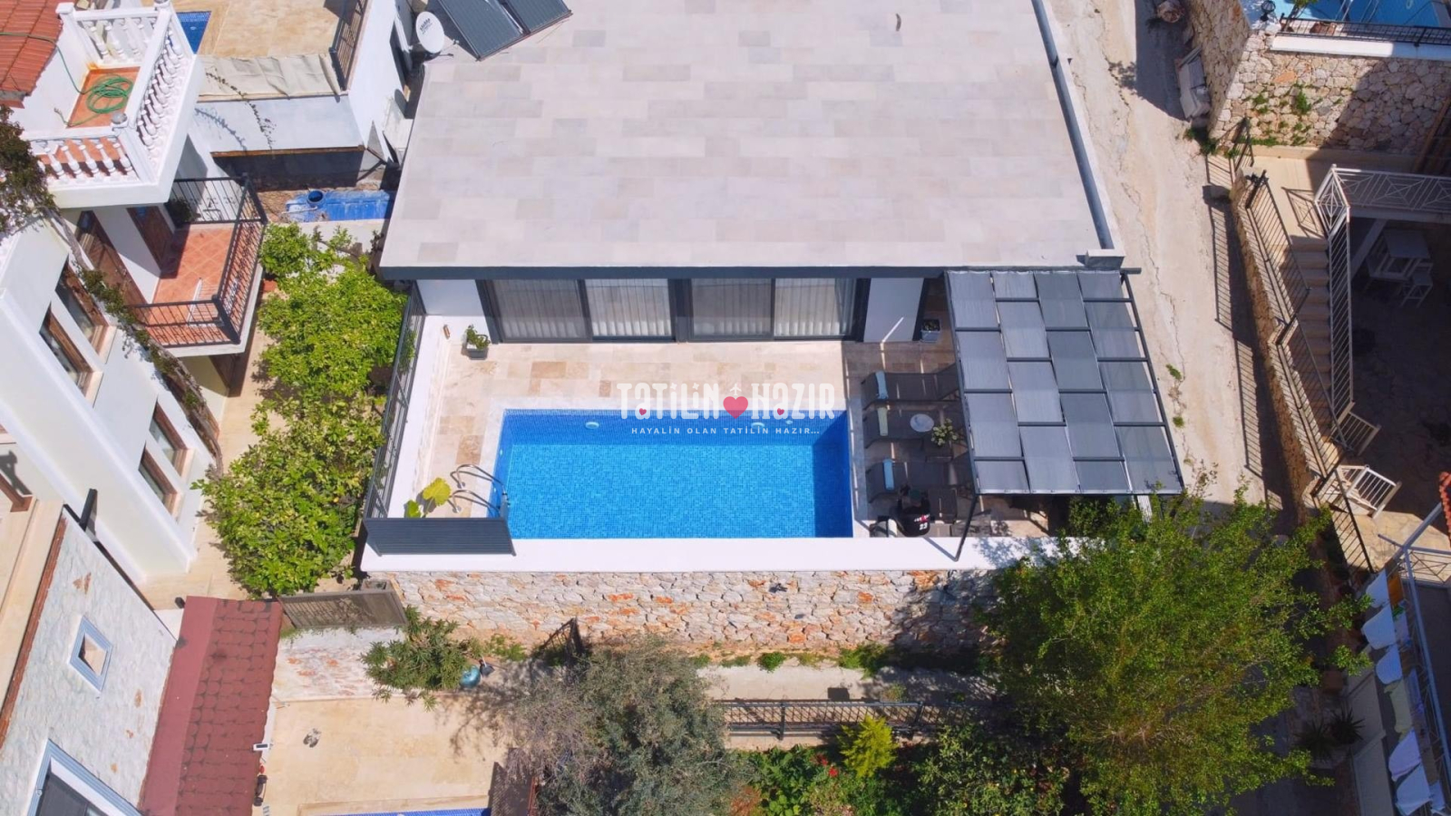 Villa, doğal bir ortamda ve Doğayla İç İçe Konumdadır . Kalkan' ın sakin ve huzurlu ortamında, doğa ile iç içe bir tatil deneyimi.