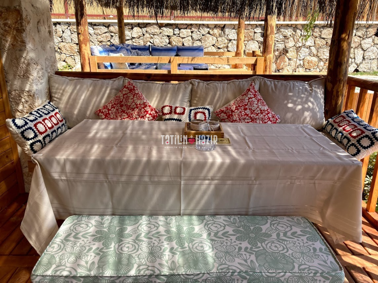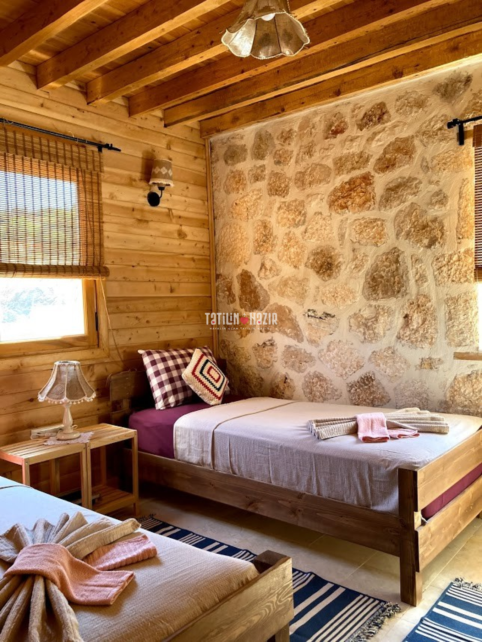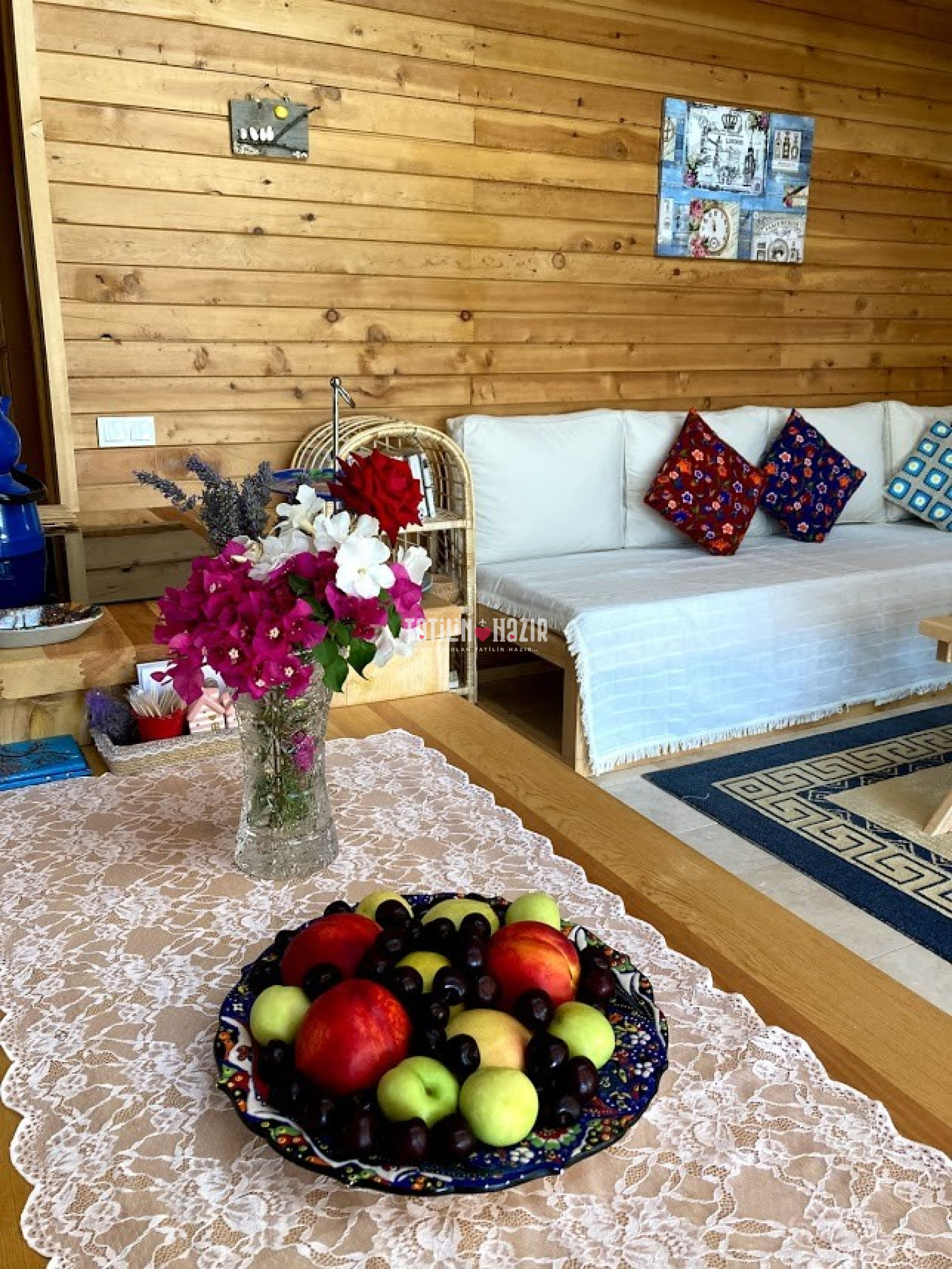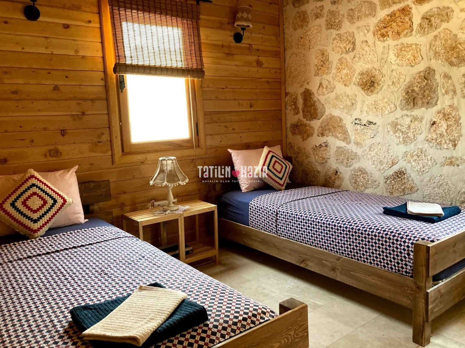 Fıstık Ev'e girdiğiniz anda sizi yüksek tavanlı, ahşap ve doğal taş dokunun sarmaladığı sıcak bir ortam bekliyor. Geniş cam yüzeylerden sizi kucaklayan Kaputaş Vadisi ve Akdeniz'in sonsuz ufku aydınlık ve ferah bir mekanın parçası olarak karşınıza çıkıyor. Geleneksel sedirli oturma odanızda en sevdiğiniz kitabınızı okuyabilir, televizyon seyredebilir ya da yalnızca yanıbaşınızda sizi saran huzur dolu doğanın keyfini çıkarabilirsiniz.