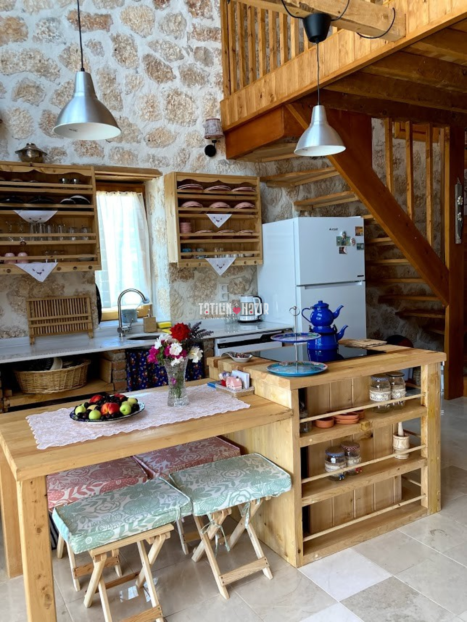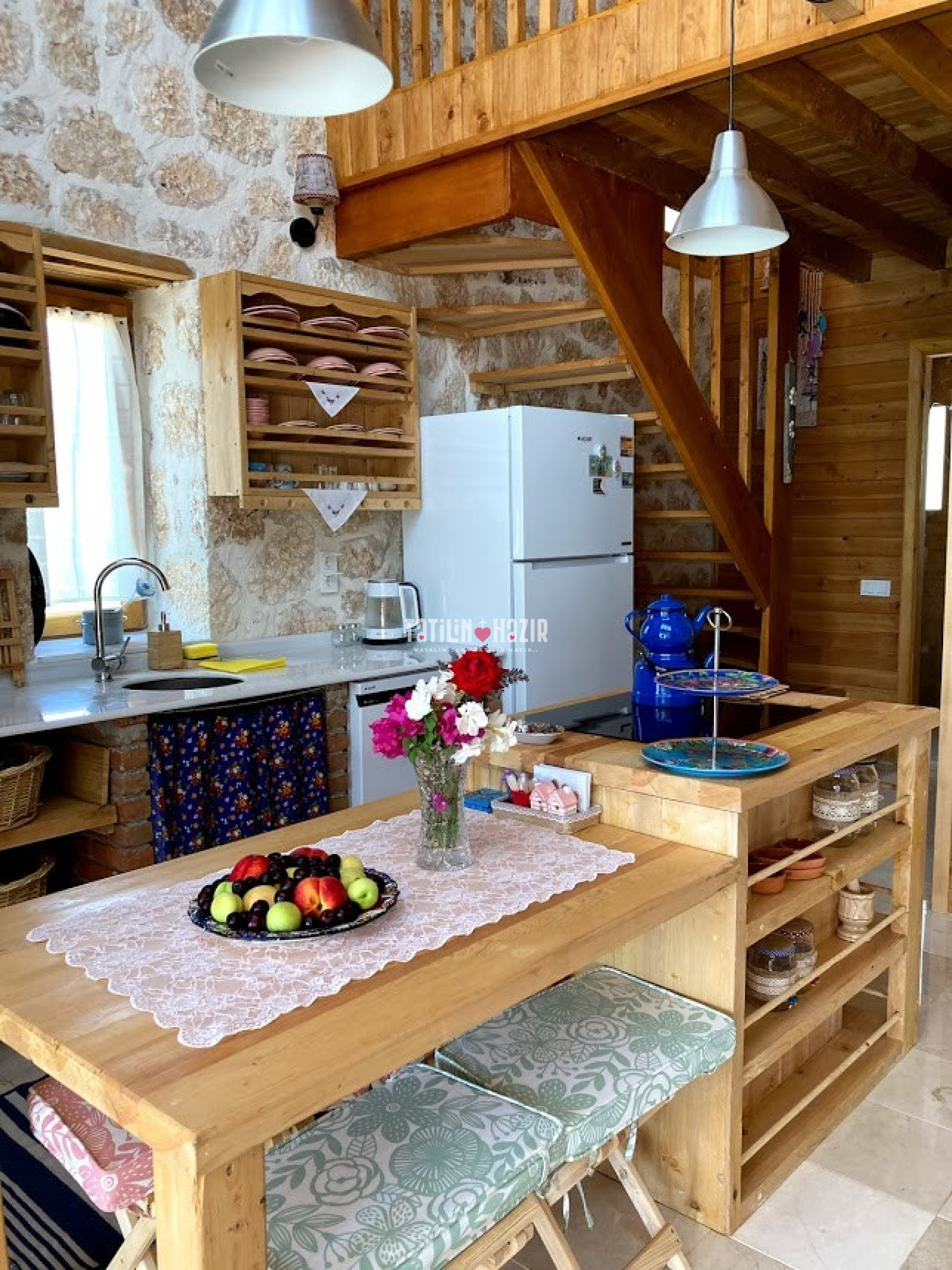 Sade bir yaklaşımla tasarlanan açık mutfağınızda, bahçenizden ve yakın çevrenizden bulabileceğiniz taze ve organik ürünlerle keyifli yemekler yapabilmeniz için ihtiyacınız olan her imkana sahipsiniz. Mutfak sohbetleri yapabileceğiniz 4-5 kişilik masa dışında ahşap verandada yer alan köy ocaklığı ve geniş oturma alanınızda doğayla başbaşa odun ateşi keyifleri yaşayabilirsiniz.