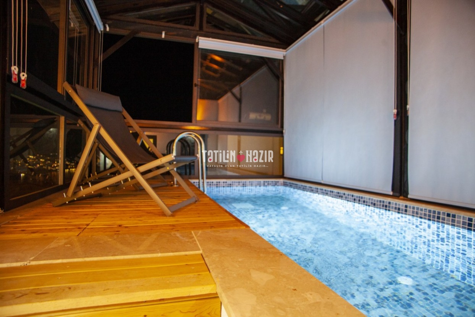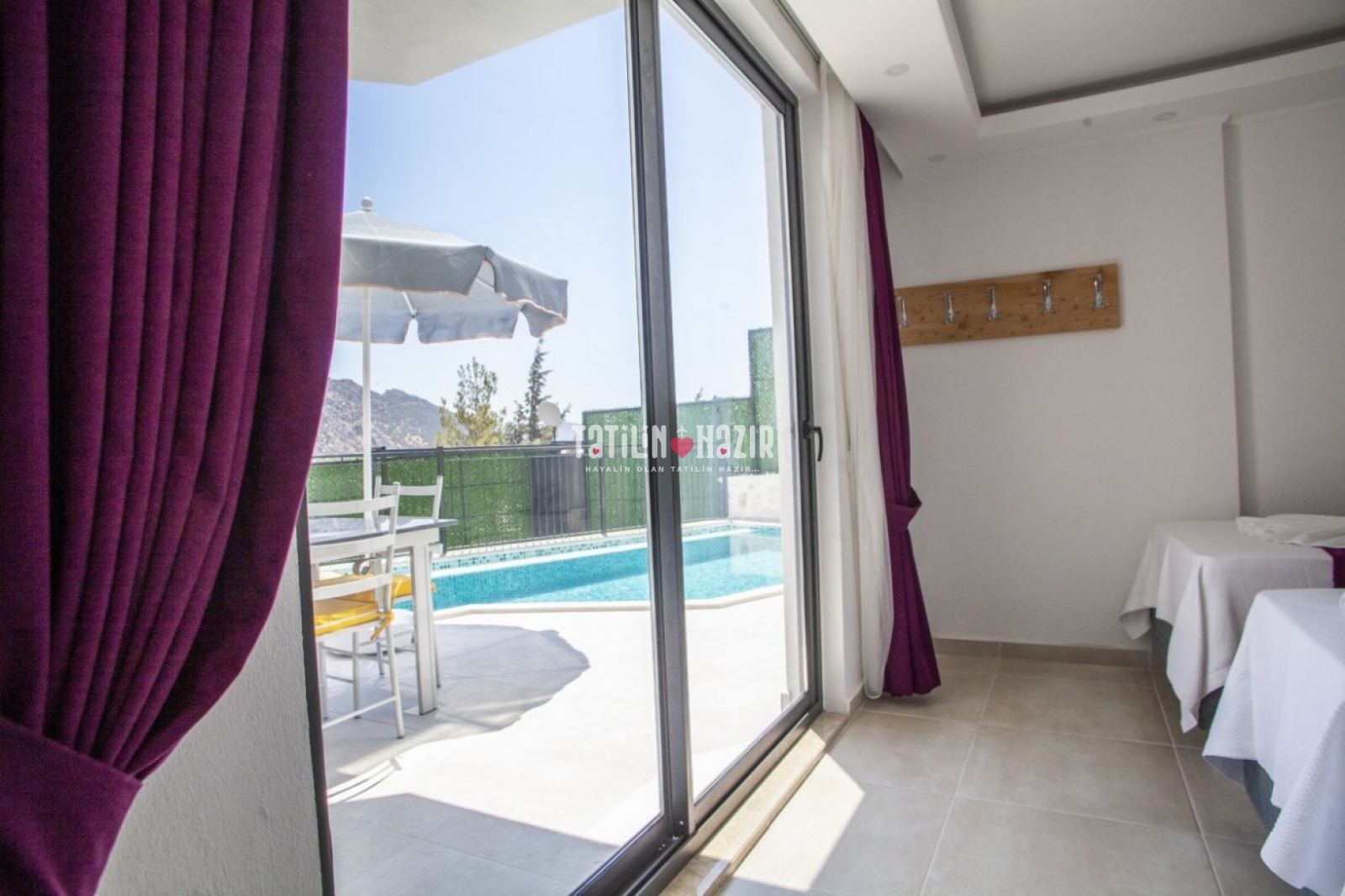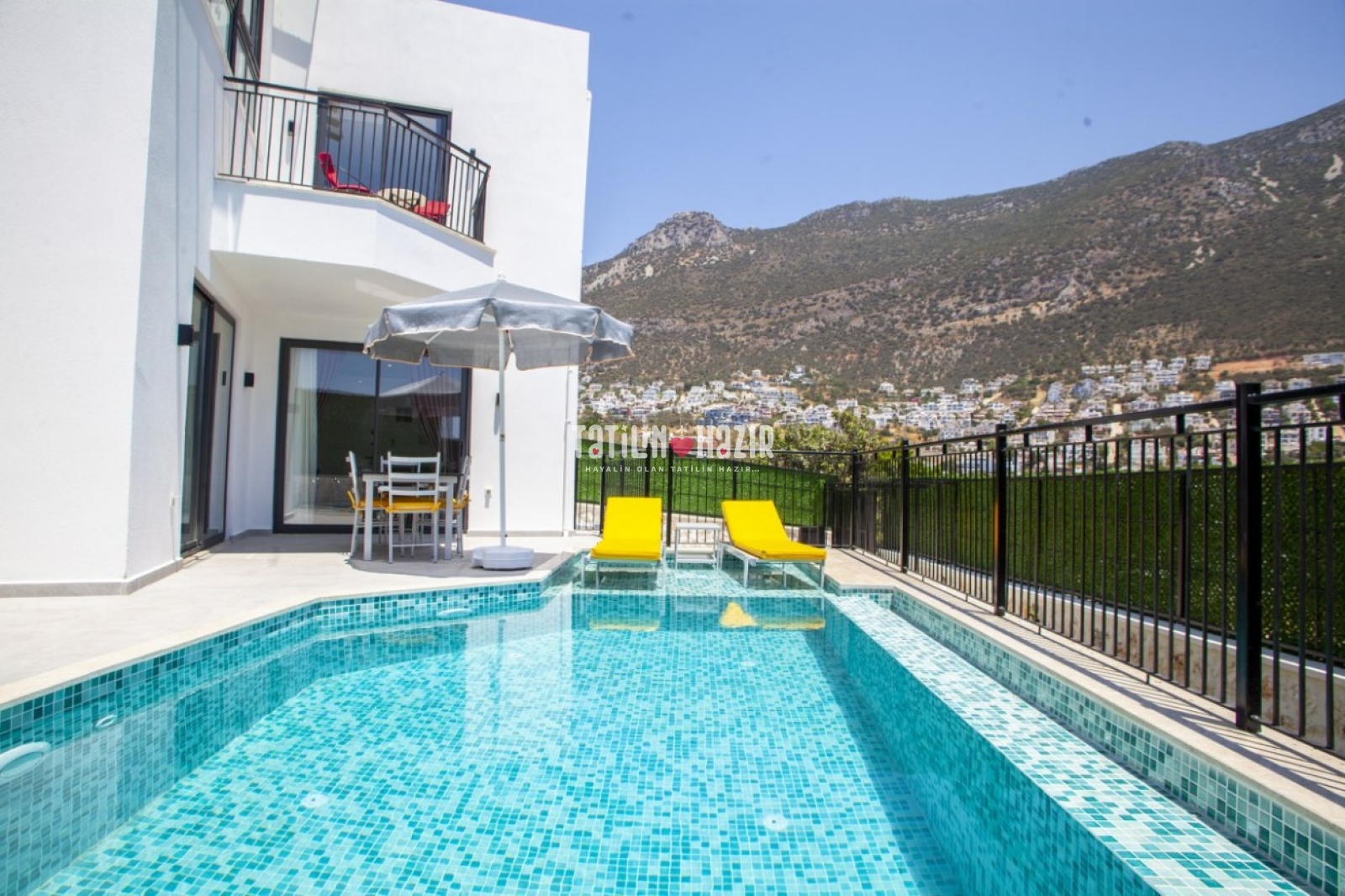 Kalkan' ın doğal güzellikleri arasında yer alan bu 2 yatak odalı villa, 4 kişilik konaklama kapasitesiyle hem rahat hem de lüks bir tatil fırsatı sunuyor. Özel yüzme havuzunuzda güneşin tadını çıkarabilir, günün yorgunluğunu atabilirsiniz. Villa, tam donanımlı bir mutfak, geniş bir oturma alanı ve modern dekorasyonuyla sizi bekliyor. Doğayla iç içe, sakin bir atmosferde dinlenmek ve Kalkan ın huzur veren doğasında yenilenmek isteyenler için ideal bir seçim!