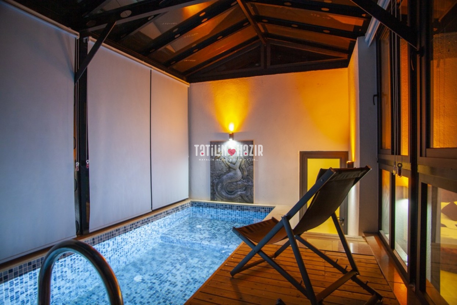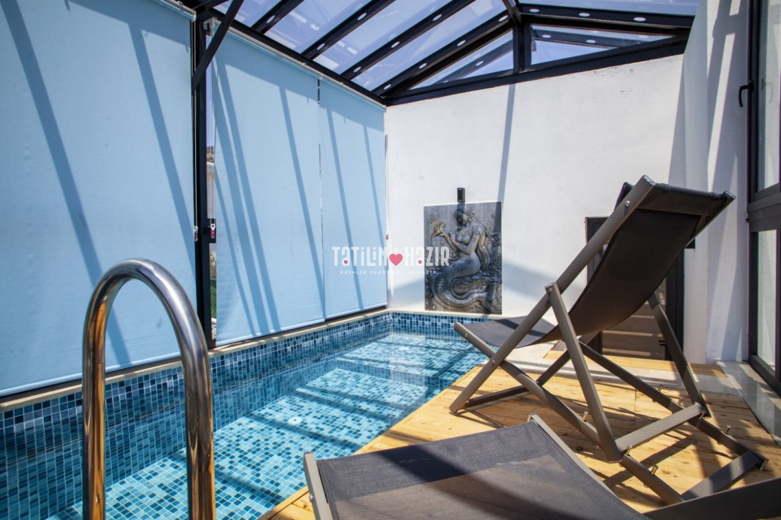 2 adet geniş ve konforlu yatak odası , Özel yuzma havuzu ve kapalı havuzu , Özel bahçe, barbekü alanı, geniş teras .