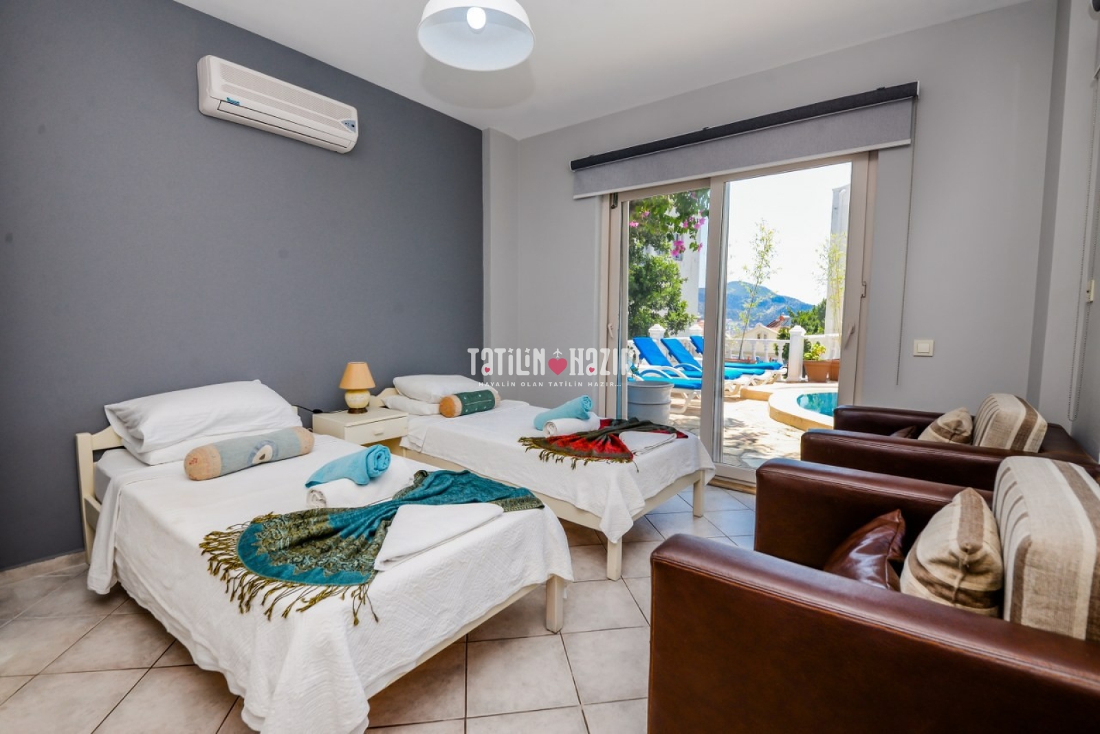 Kaş'ın doğal güzellikleri arasında yer alan bu 4 yatak odalı jakuzili villa, 8 kişilik konaklama kapasitesiyle hem rahat hem de lüks bir tatil fırsatı sunuyor. Özel yüzme havuzunuzda güneşin tadını çıkarabilir, günün yorgunluğunu ana yatak odasında atabilirsiniz. Villa, tam donanımlı bir mutfak, geniş bir oturma alanı ve modern dekorasyonuyla sizi bekliyor.