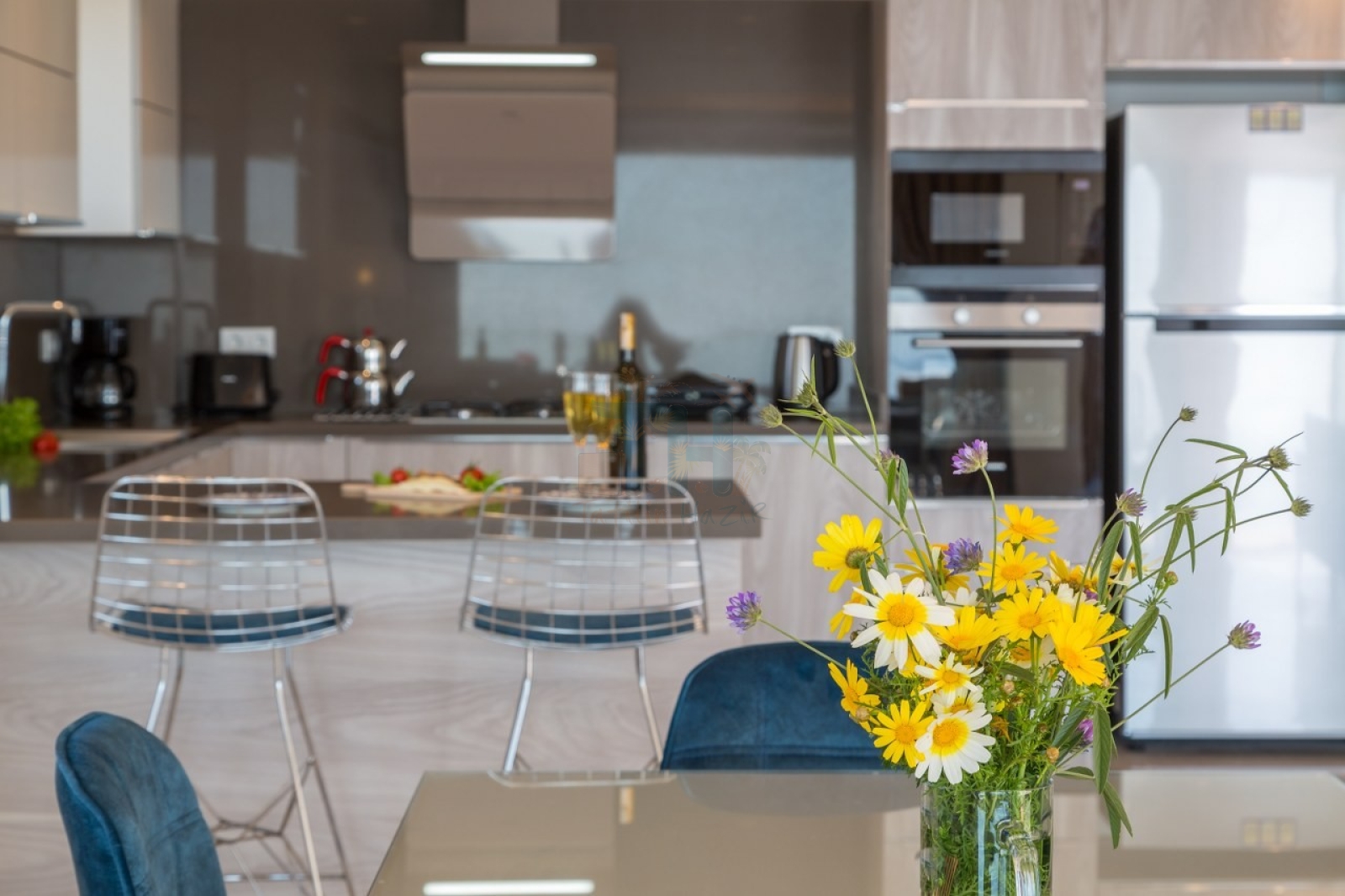 Tam Donanımlı Mutfak: İhtiyacınız olan her şeye sahip, şık mutfak.