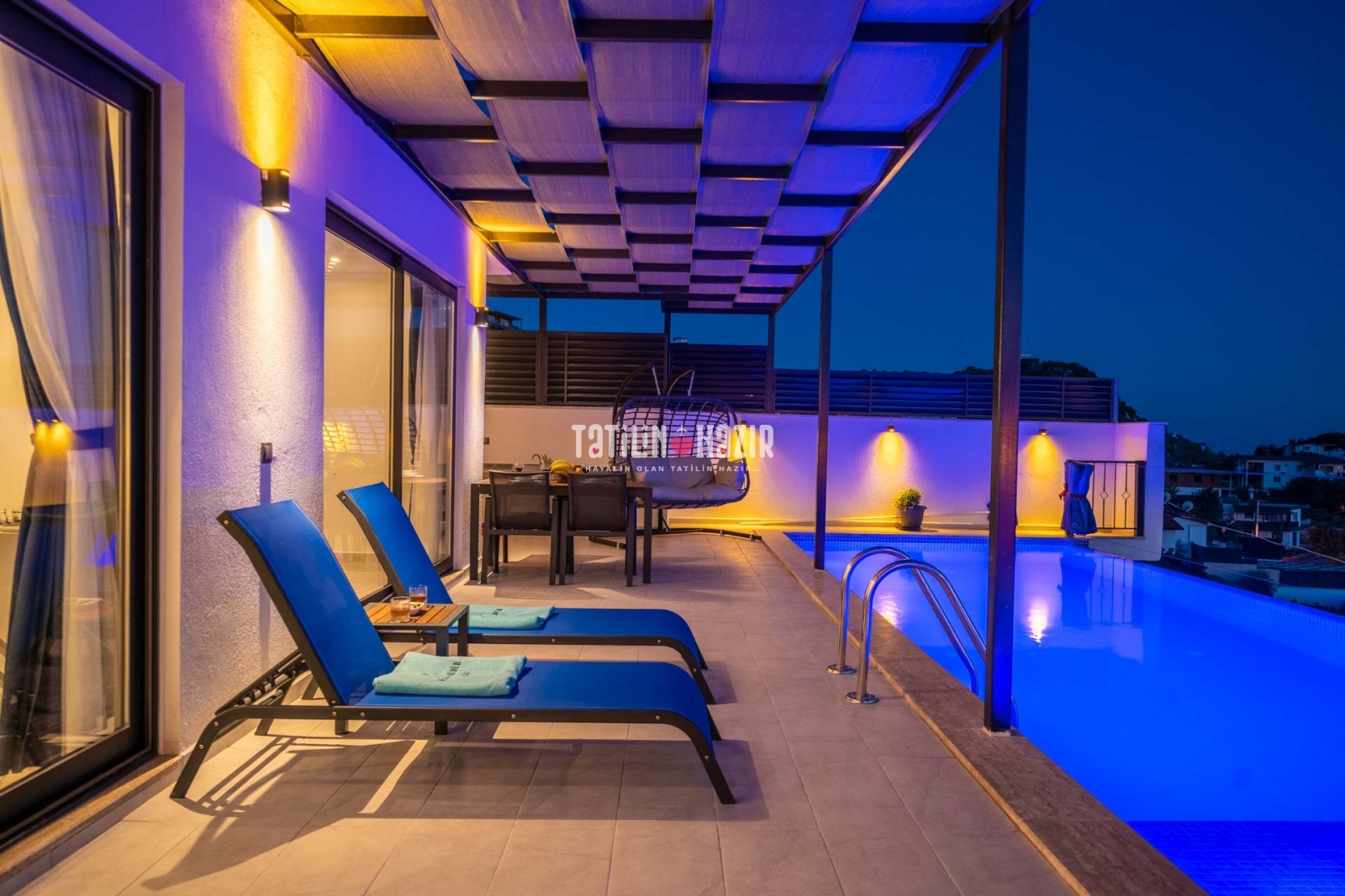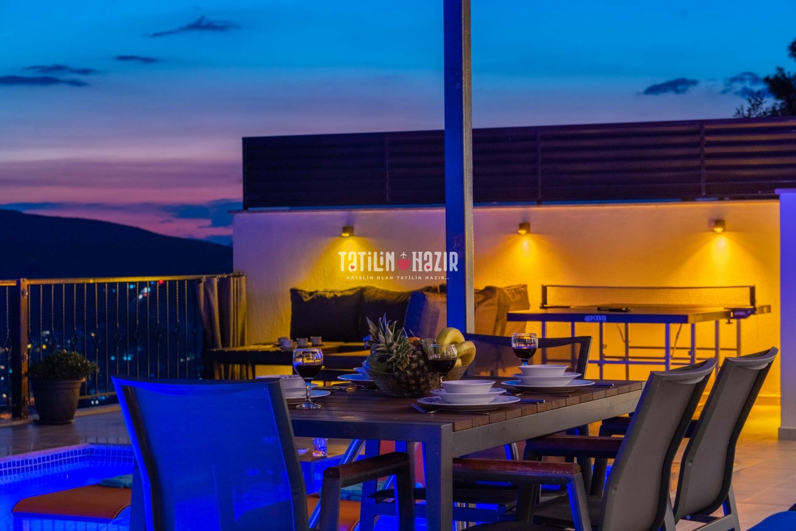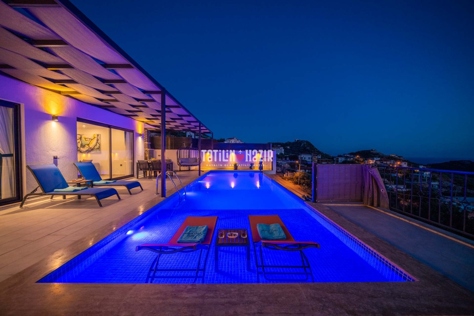 Kalkan'ın en özel manzarasını keyifle seyredebileceğiniz villamız tüm bölgeyi gün boyu kuş bakışı seyredebilmenize imkan tanır. Villa Müdür konukları için özenle tasarlanmış ve dekore edilmiştir. Villamızın içerisinde jakuzi bulunmaktadır. Bunun yanı sıra sizlere lüks ve konforlu bir tatil deneyimi sunan Villa Müdür ' ün, şezlong, oturma köşesi, yemek masası ve barbekü alanı yer almaktadır.