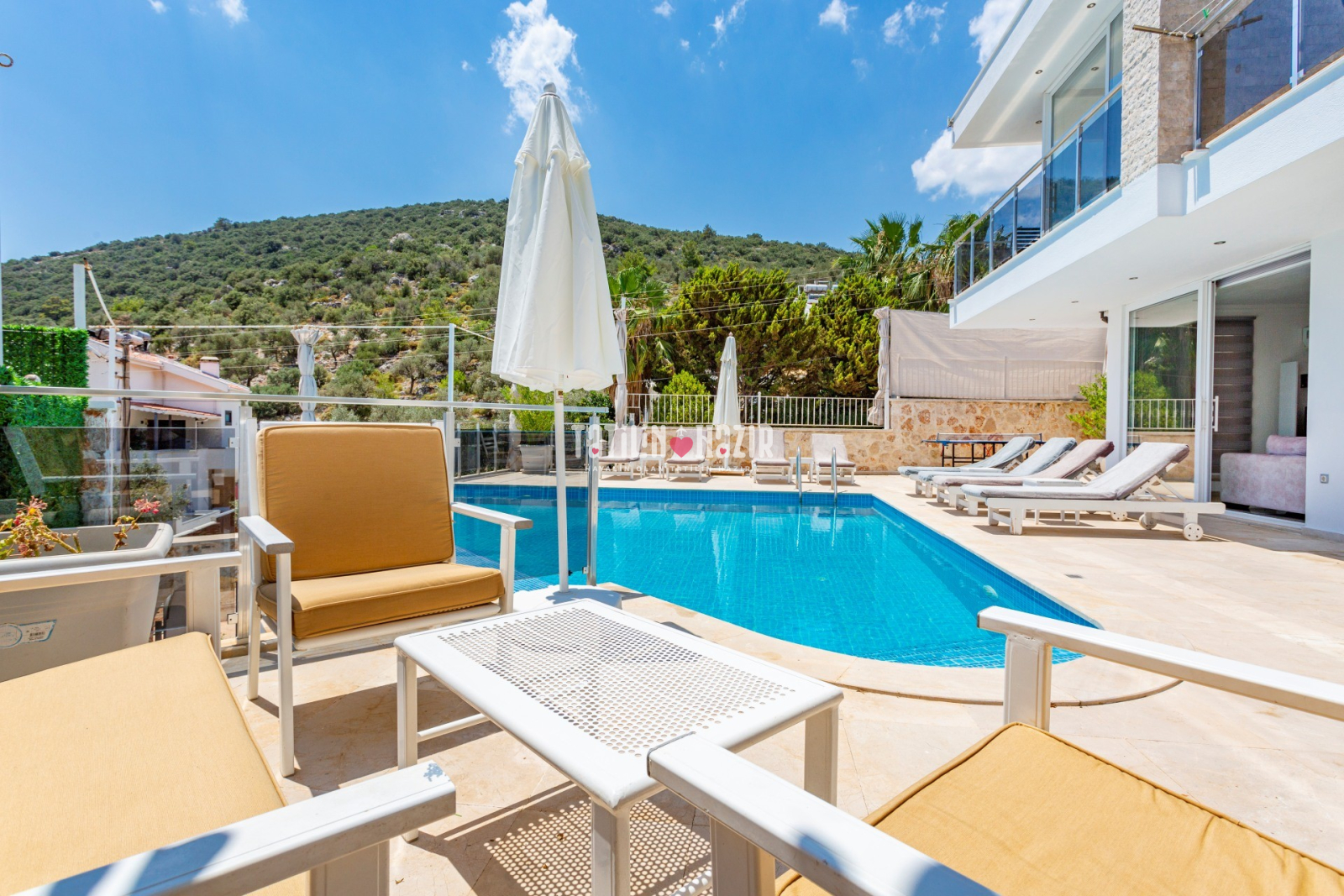 Kaş'ın doğal güzellikleri arasında yer alan bu 4 yatak odalı jakuzili villa, 8 kişilik konaklama kapasitesiyle hem rahat hem de lüks bir tatil fırsatı sunuyor. Özel yüzme havuzunuzda güneşin tadını çıkarabilir, günün yorgunluğunu ana yatak odasında bulunan jakuzinizde atabilirsiniz. Villa, tam donanımlı bir mutfak, geniş bir oturma alanı ve modern dekorasyonuyla sizi bekliyor.
