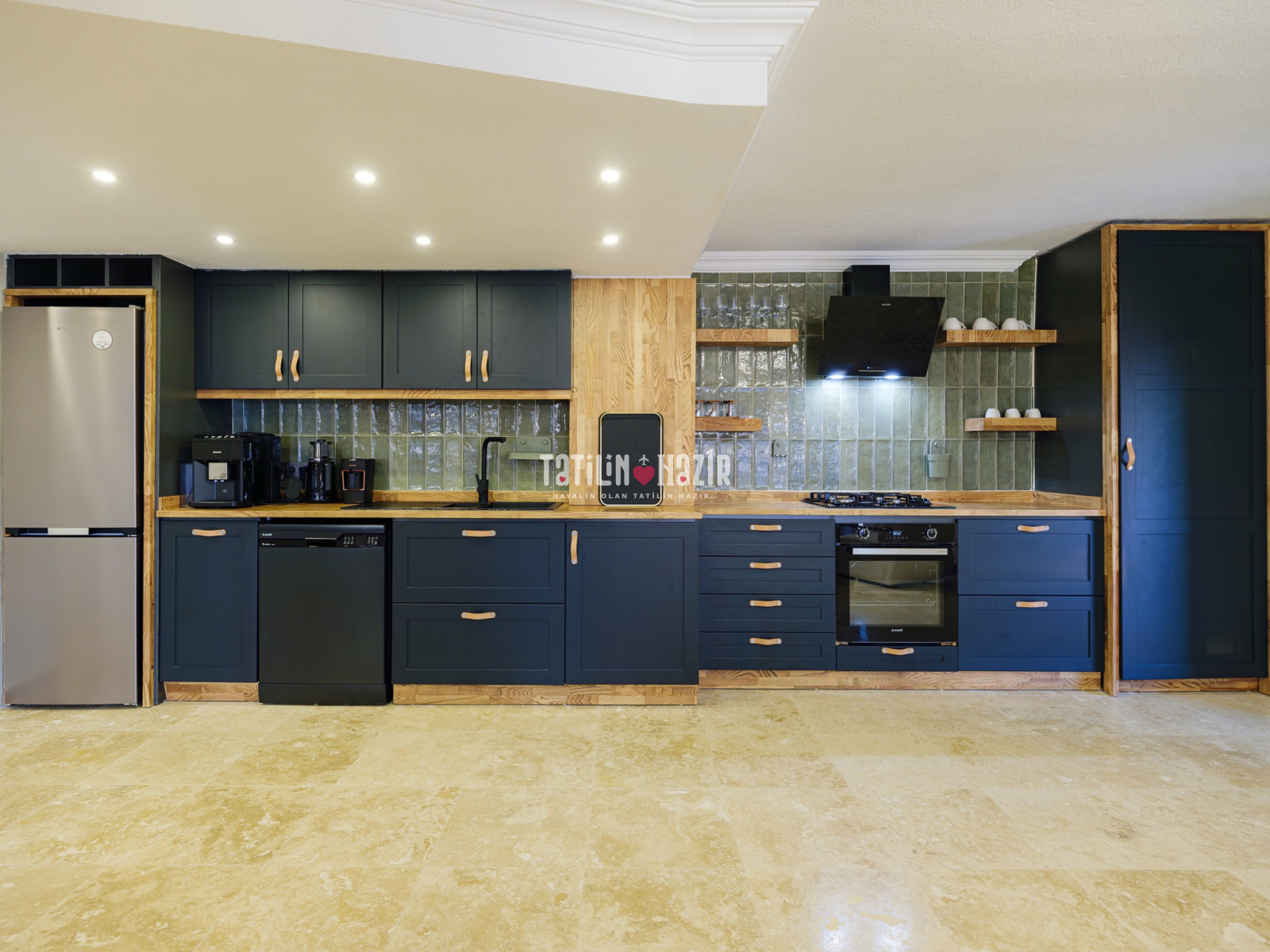 Villamızda tüm ihtiyaçlarınızı karşılayacak mutfak araç gereçleri bulunmaktadır. Salonumuzda; TV, oturma grubu, sehpa vb. eşyalar bulunmaktadır.