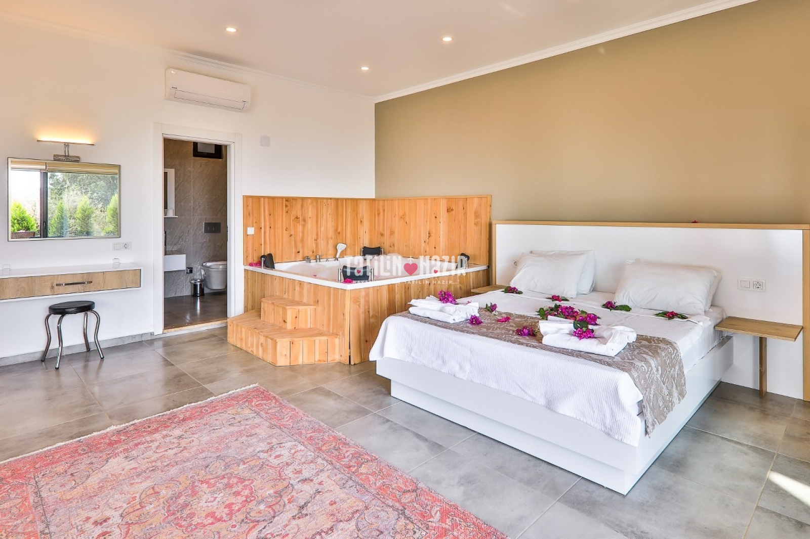 1 adet geniş , Jakuzili ve konforlu yatak odası, kapalı havuzu, Özel bahçe, teras