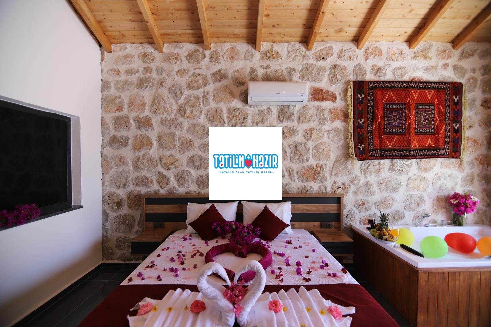 Kalkan İslamlar 'da Konforlu ve Lüks 4 Kişilik Jakuzili Villa