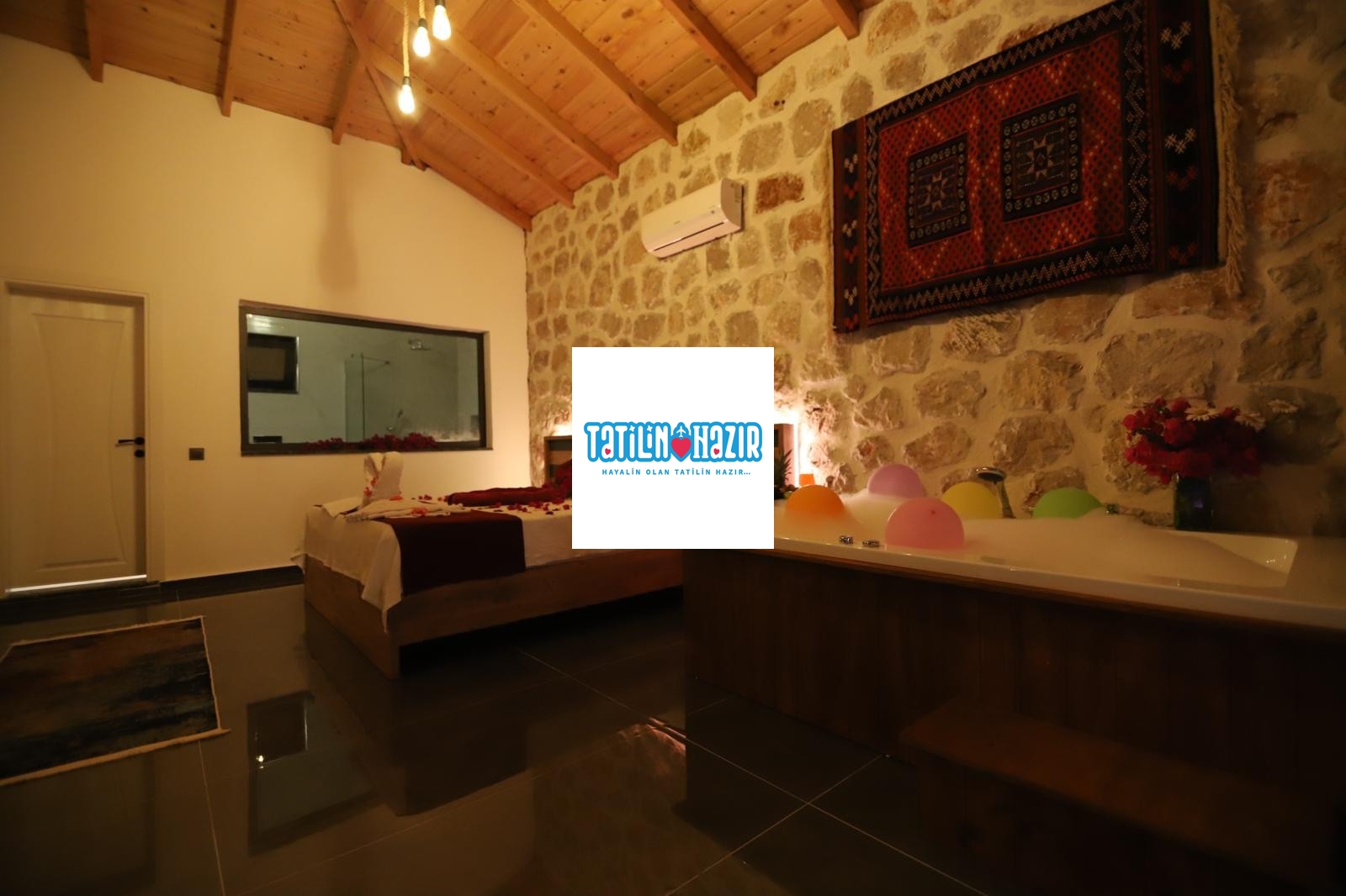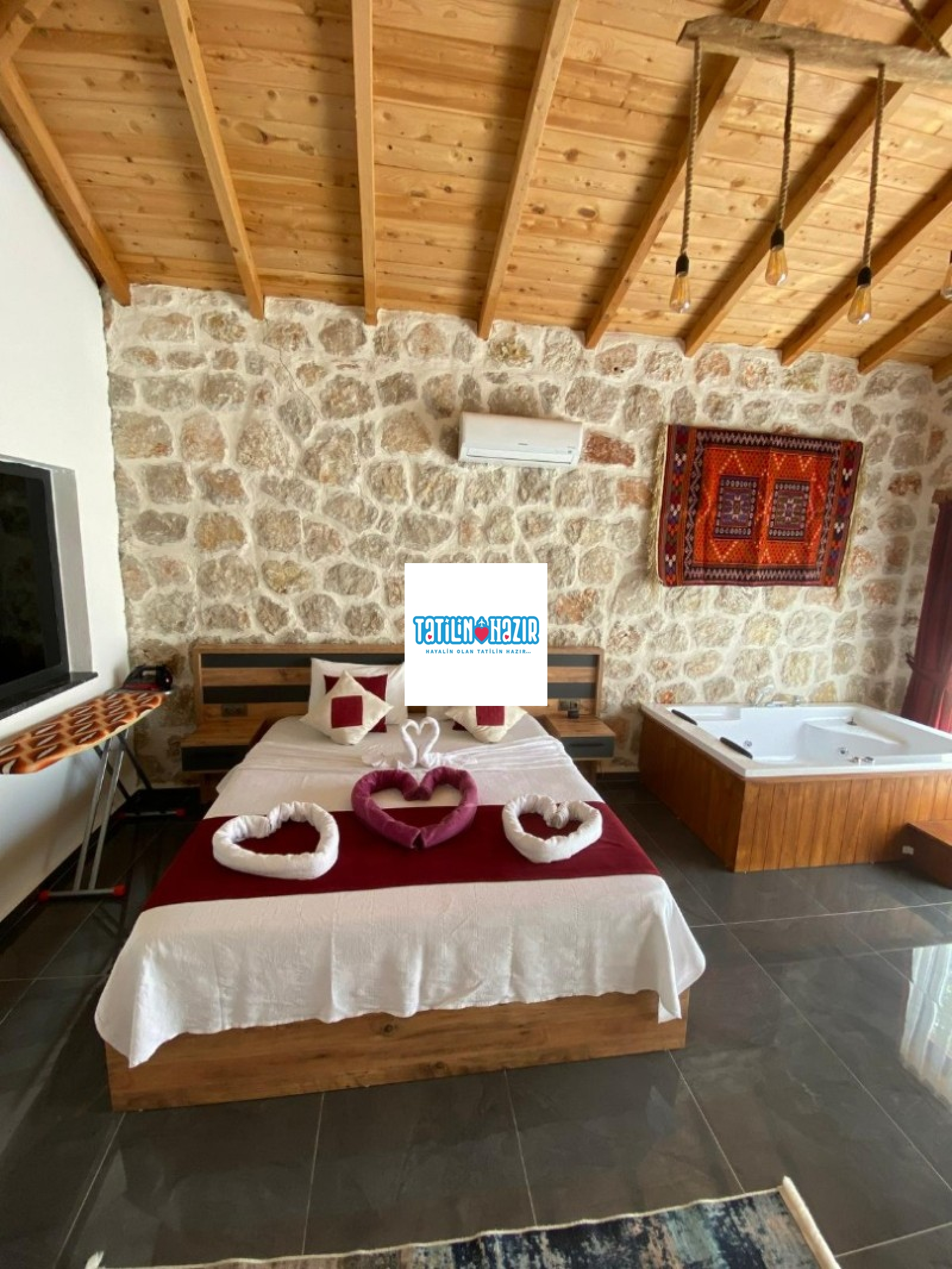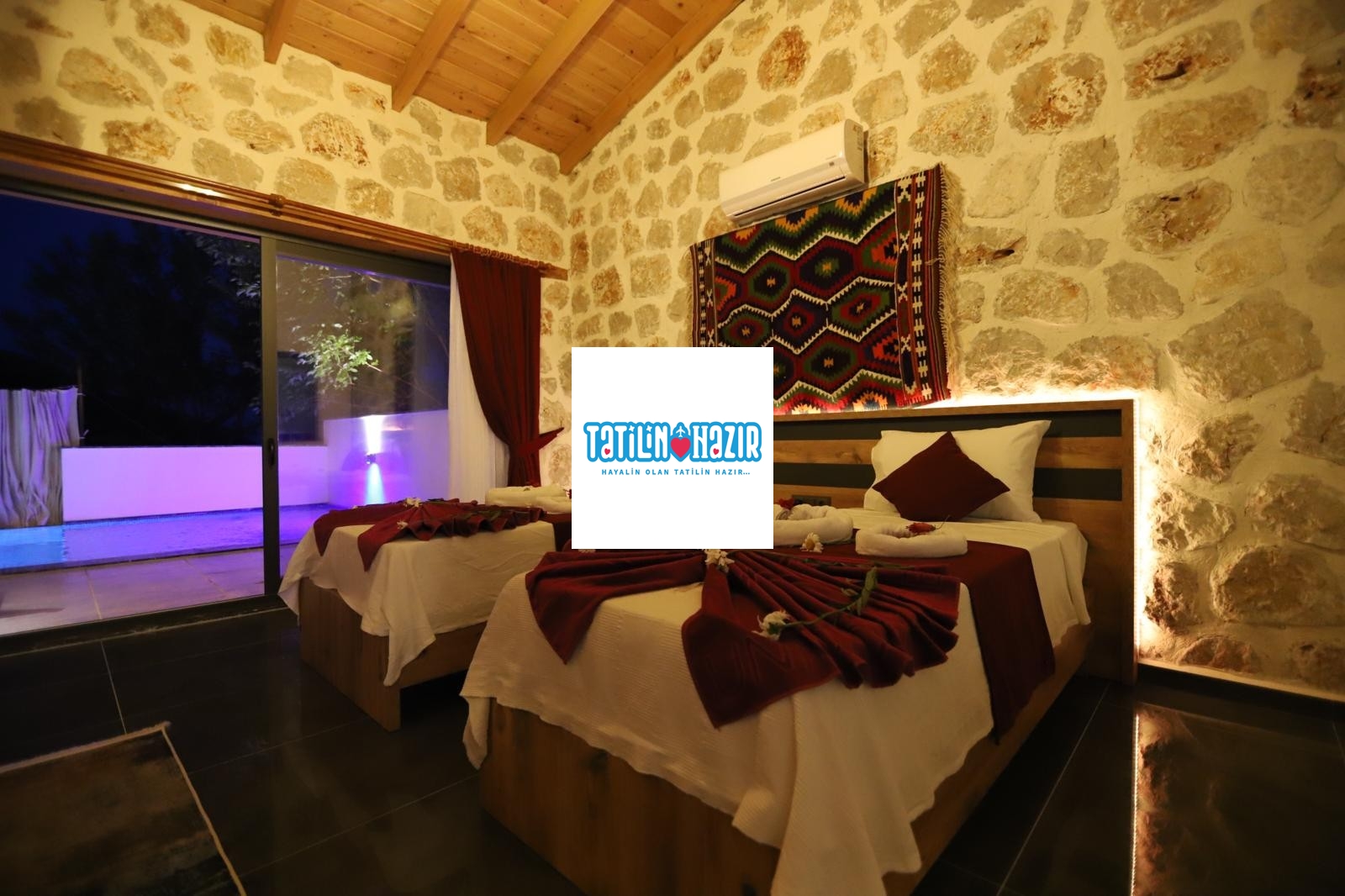 Kaş'ın doğal güzellikleri arasında yer alan bu 3 yatak odalı jakuzili villa, 4 kişilik konaklama kapasitesiyle hem rahat hem de lüks bir tatil fırsatı sunuyor. Özel yüzme havuzunuzda güneşin tadını çıkarabilir, günün yorgunluğunu ana yatak odasında bulunan jakuzinizde atabilirsiniz. Villa, tam donanımlı bir mutfak, geniş bir oturma alanı ve modern dekorasyonuyla sizi bekliyor.