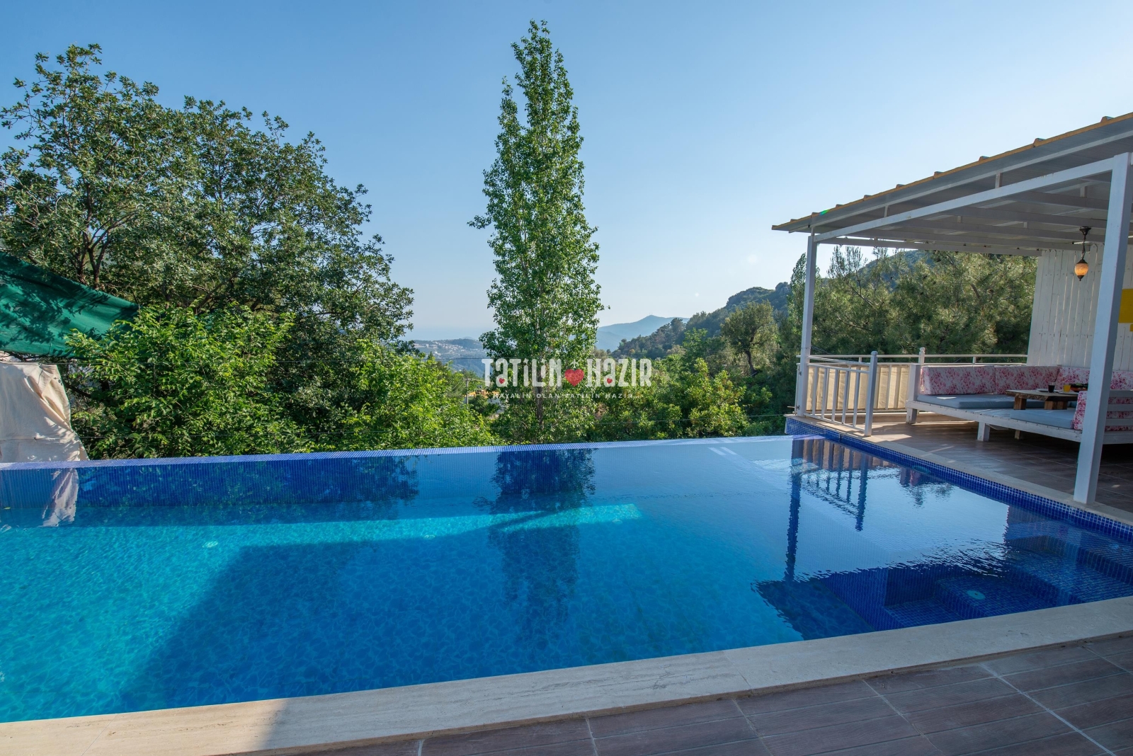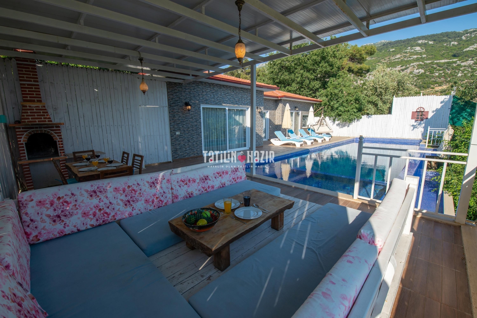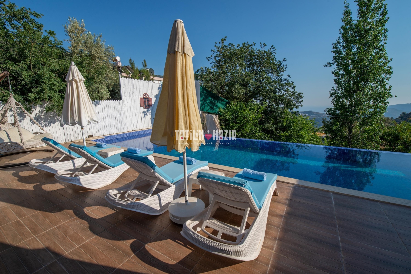 Villa Peri'nin havuz terasında salıncak ve çardak bulunmaktadır