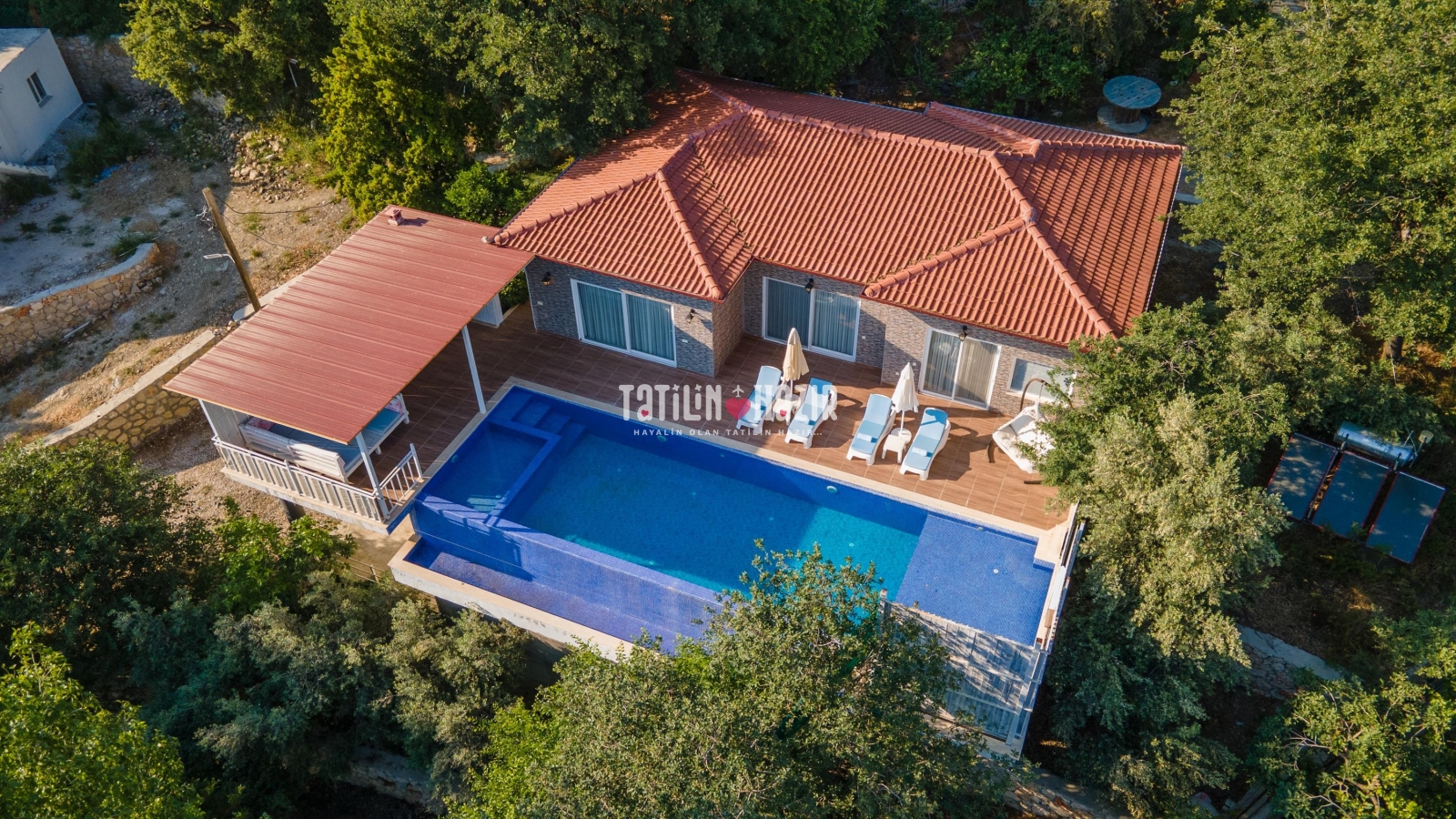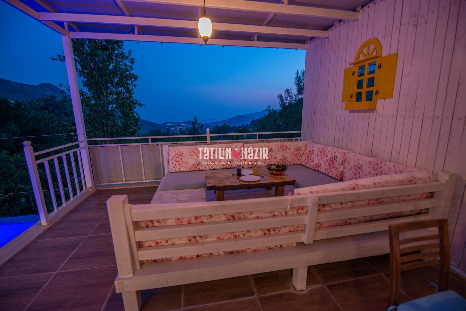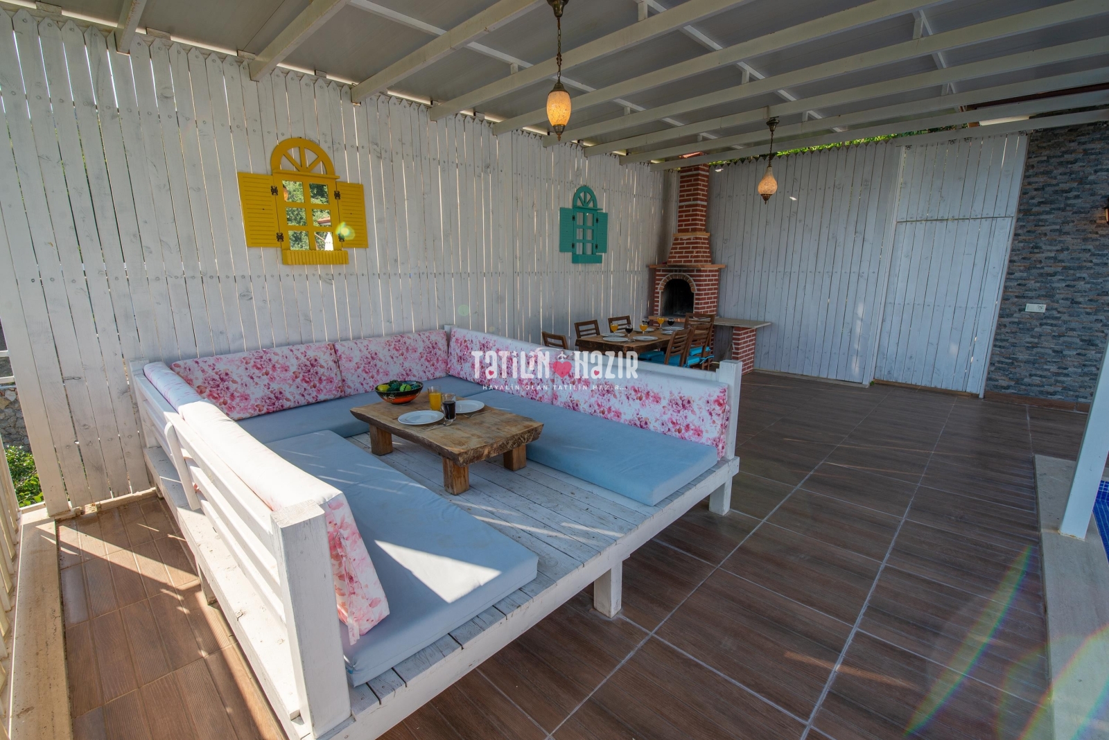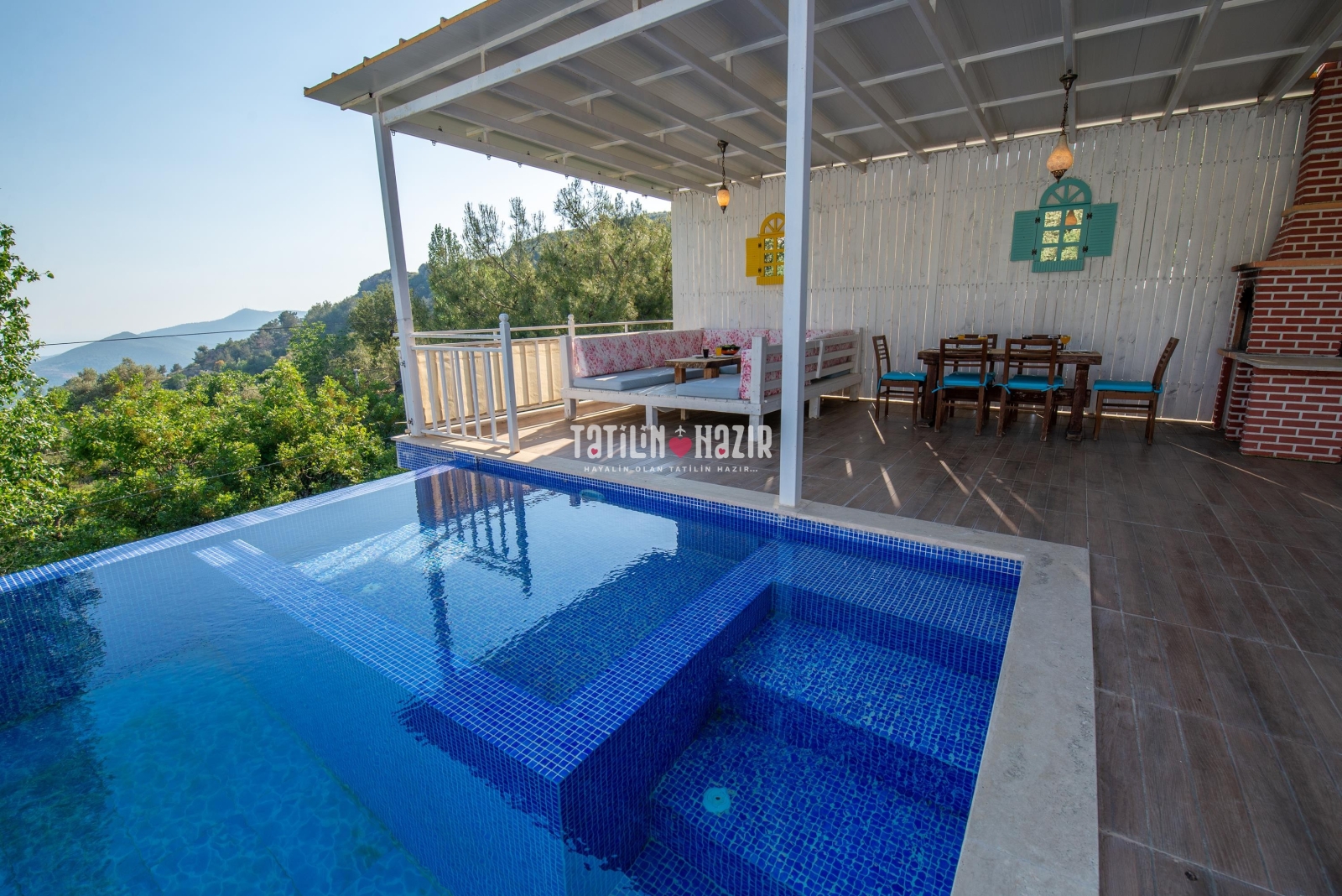 Villa Peri'nin havuz terasında salıncak ve çardak bulunmaktadır