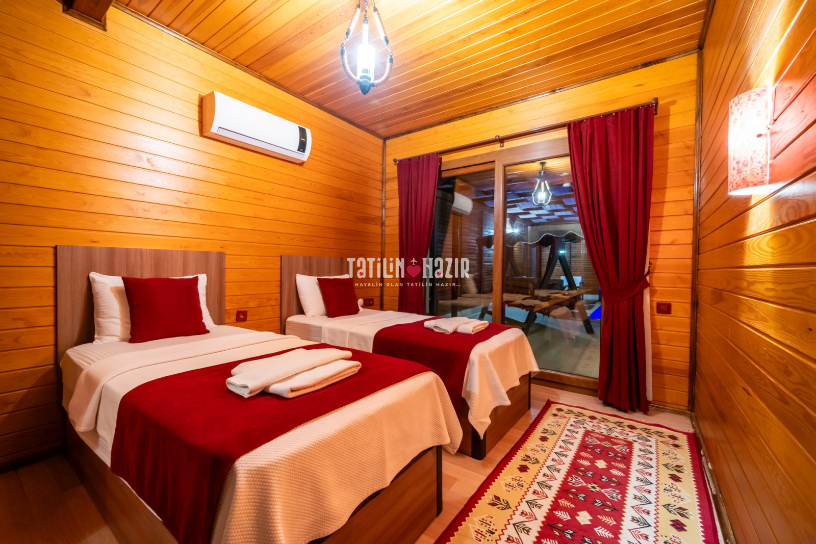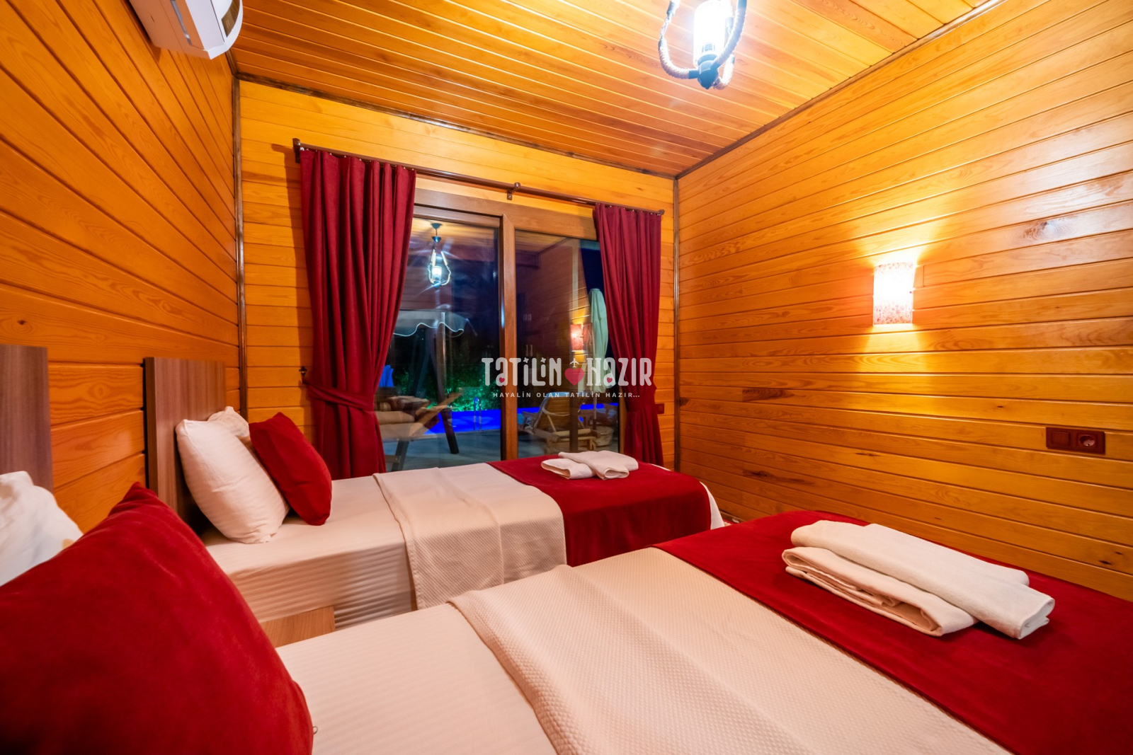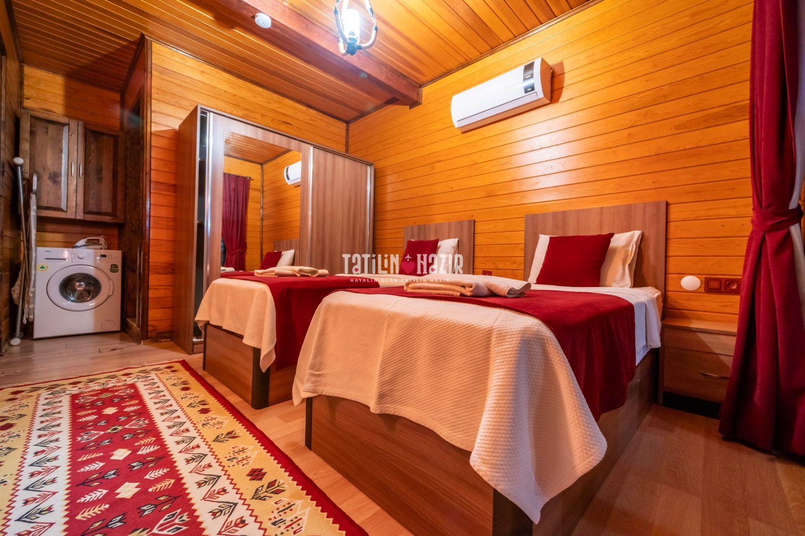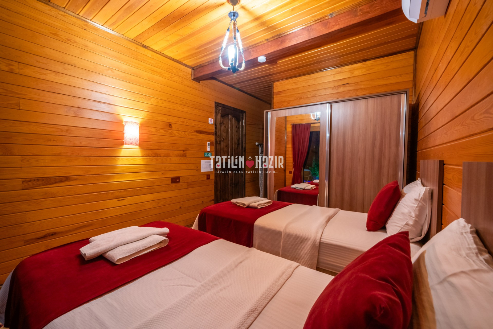 2.Yatak odası: 2adet tek kişilik yatak, klima, komodin, elbise dolabı, banyo, Wc