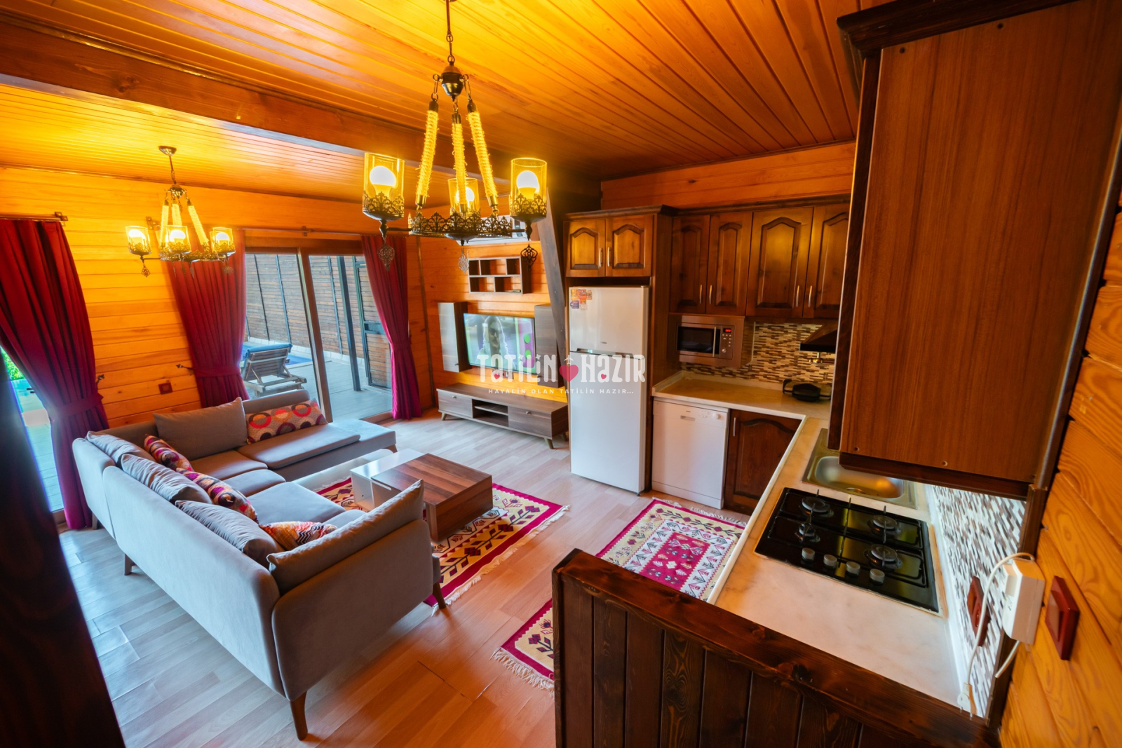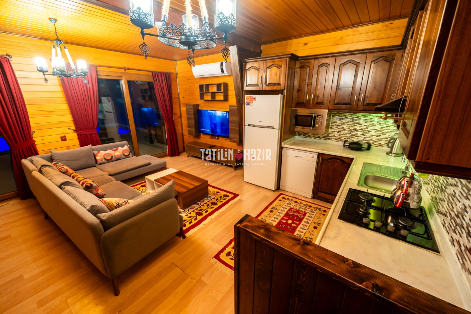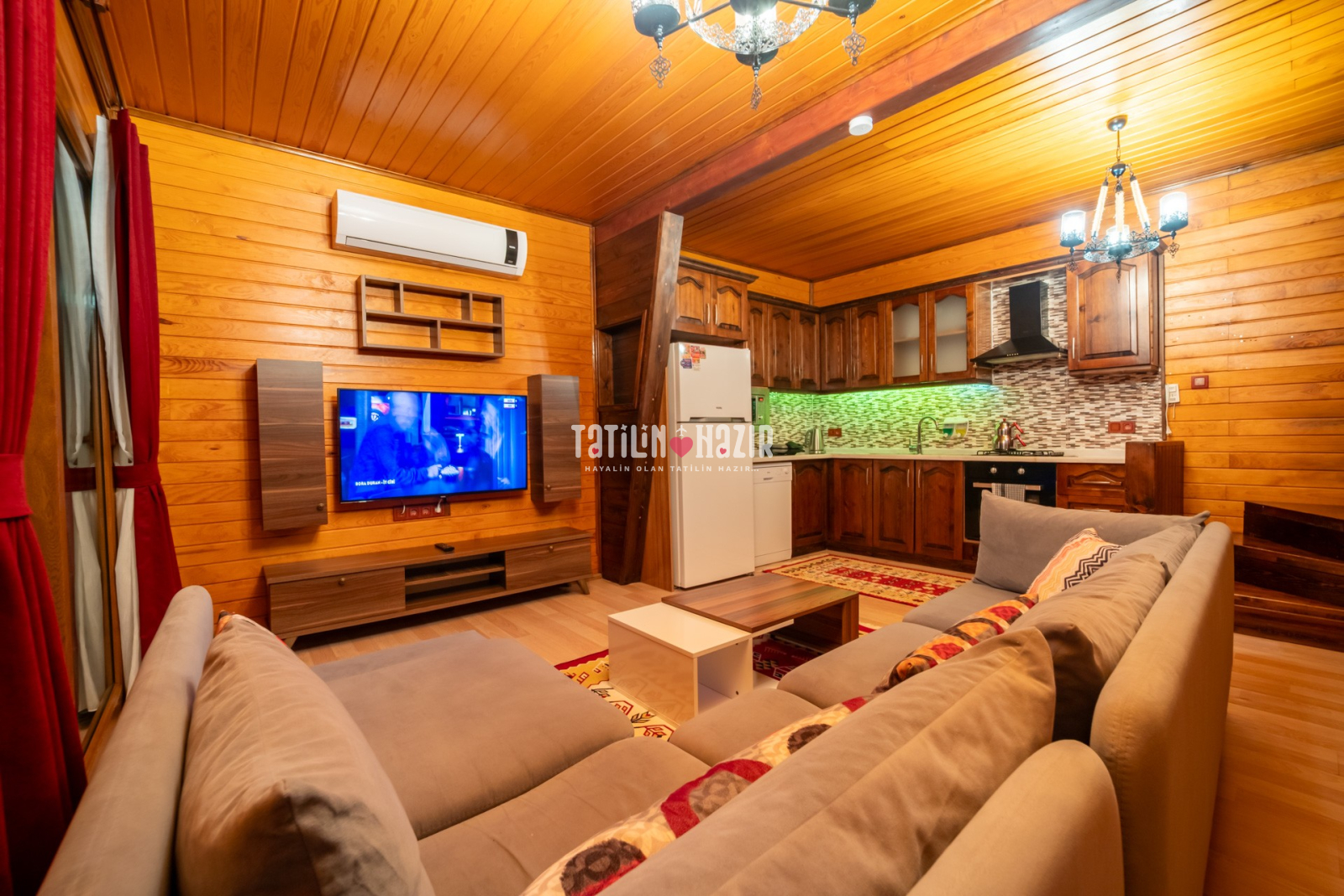 Modern Tasarım: Özgün tasarımlı ve ahşap konseptli kaliteli malzemelerle tasarlanmış geniş bir yaşam alanı.