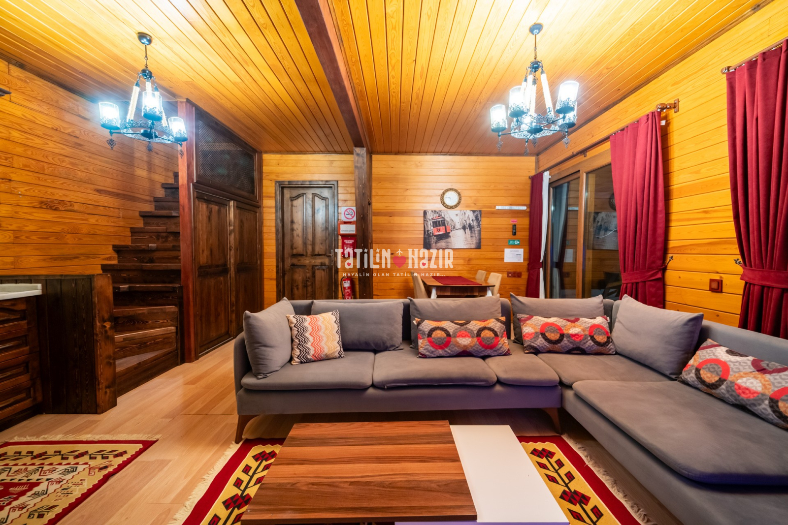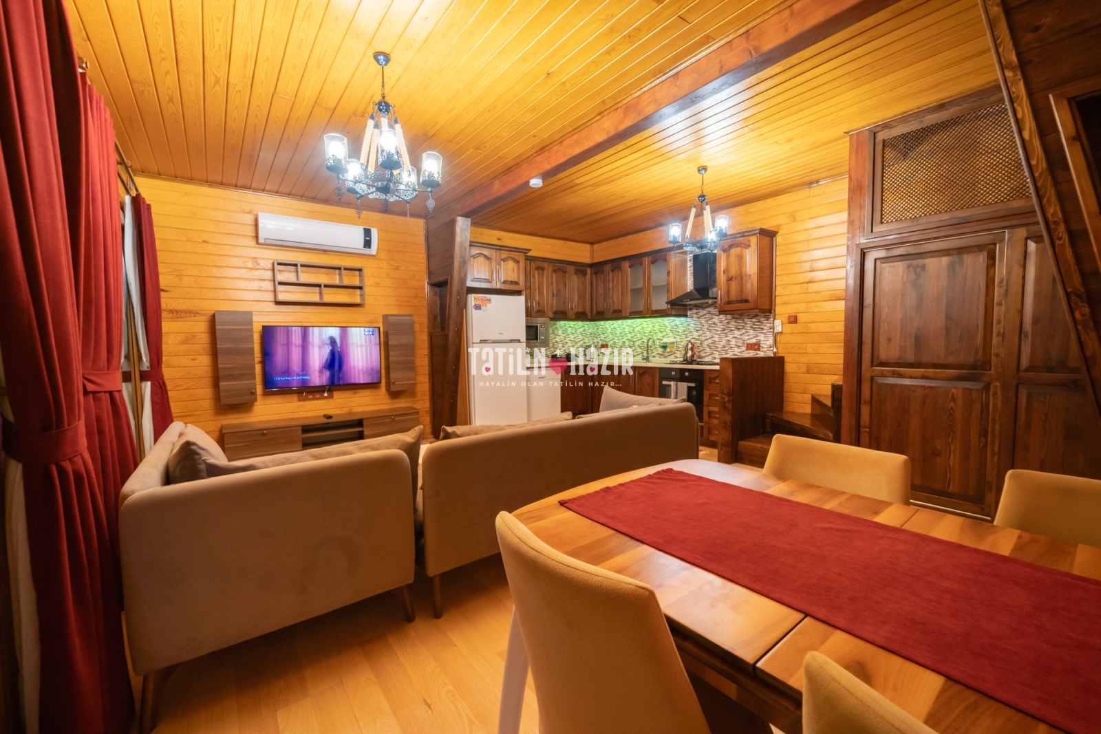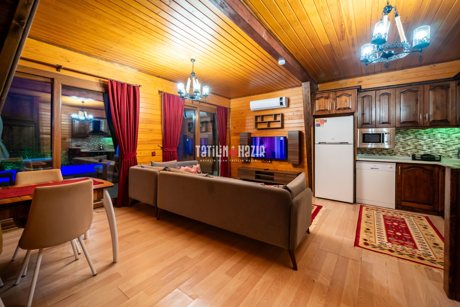 Modern Tasarım: Özgün tasarımlı ve ahşap konseptli kaliteli malzemelerle tasarlanmış geniş bir yaşam alanı.