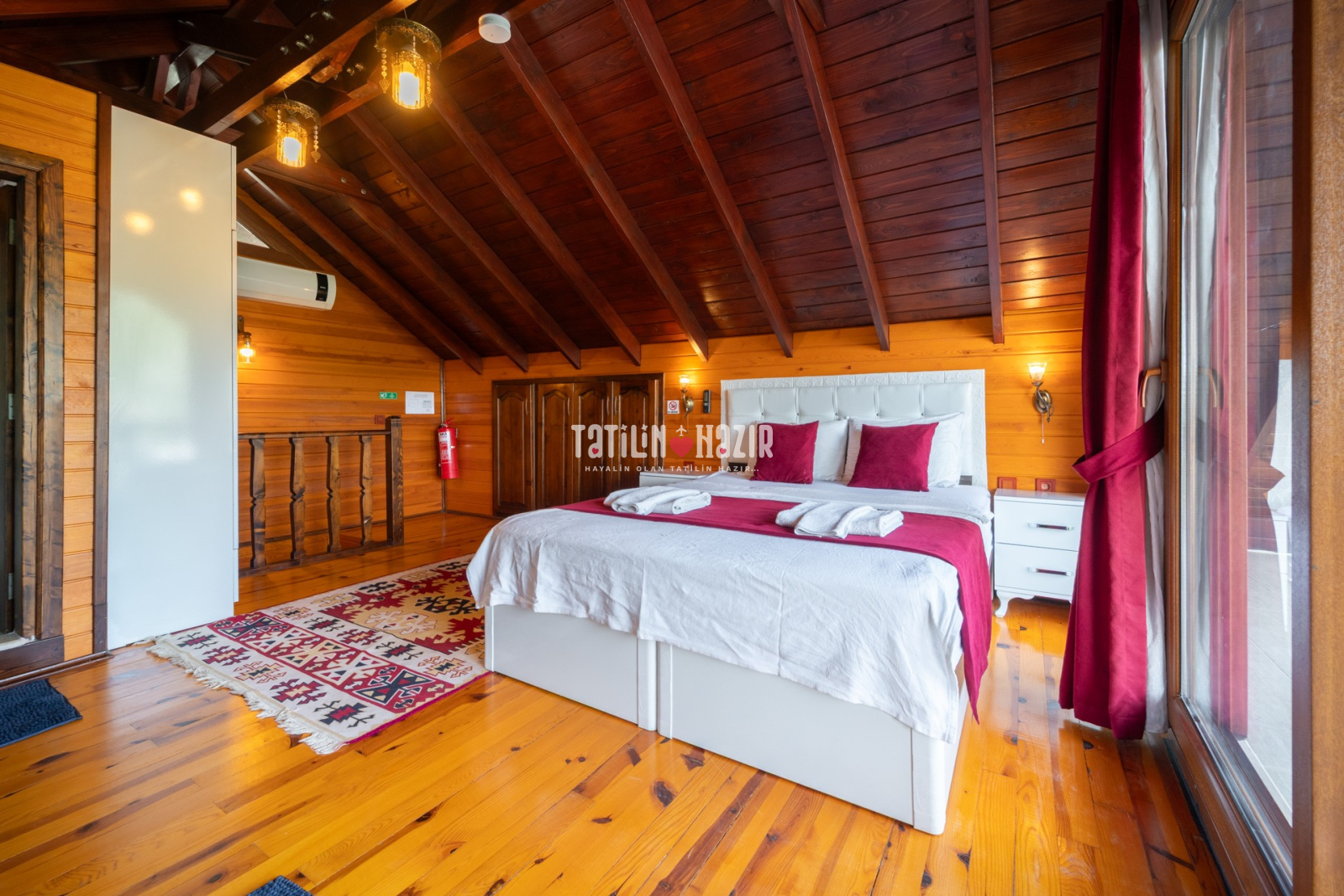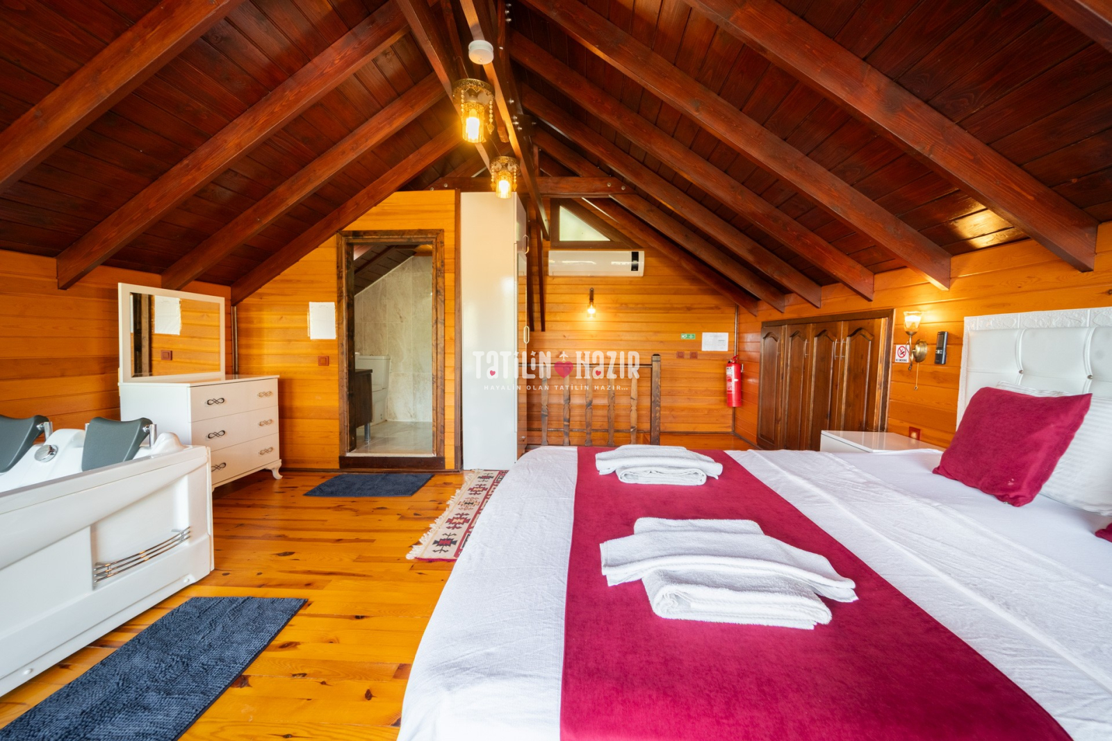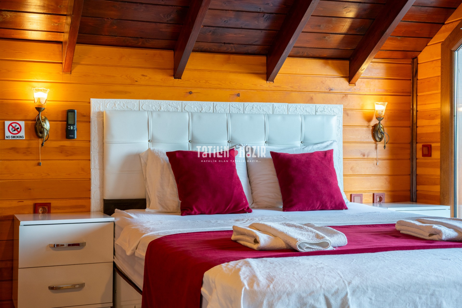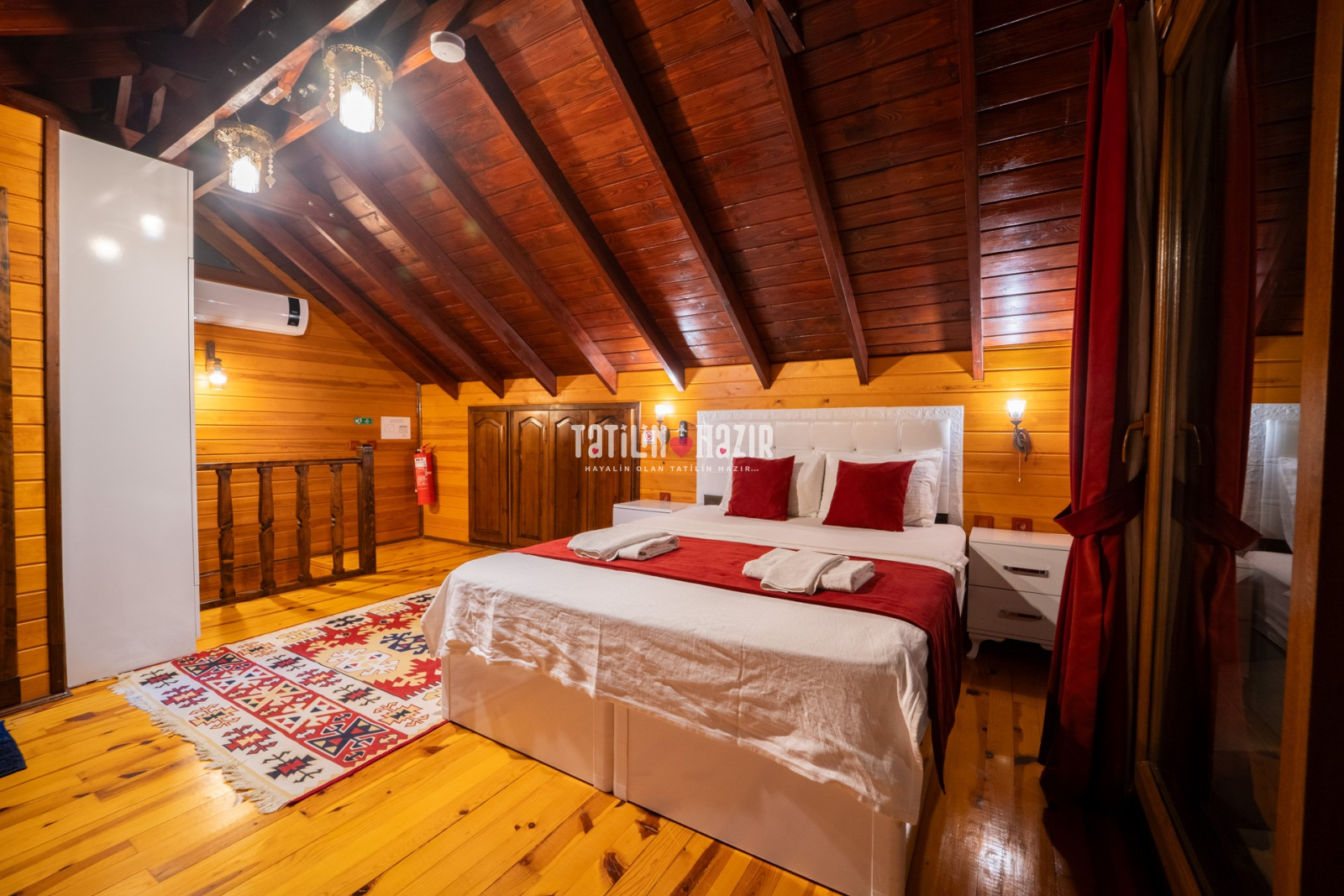 1.Yatak Odası: 1adet çift kişilik yatak, klima, komodin, elbise dolabı, banyo ,wc