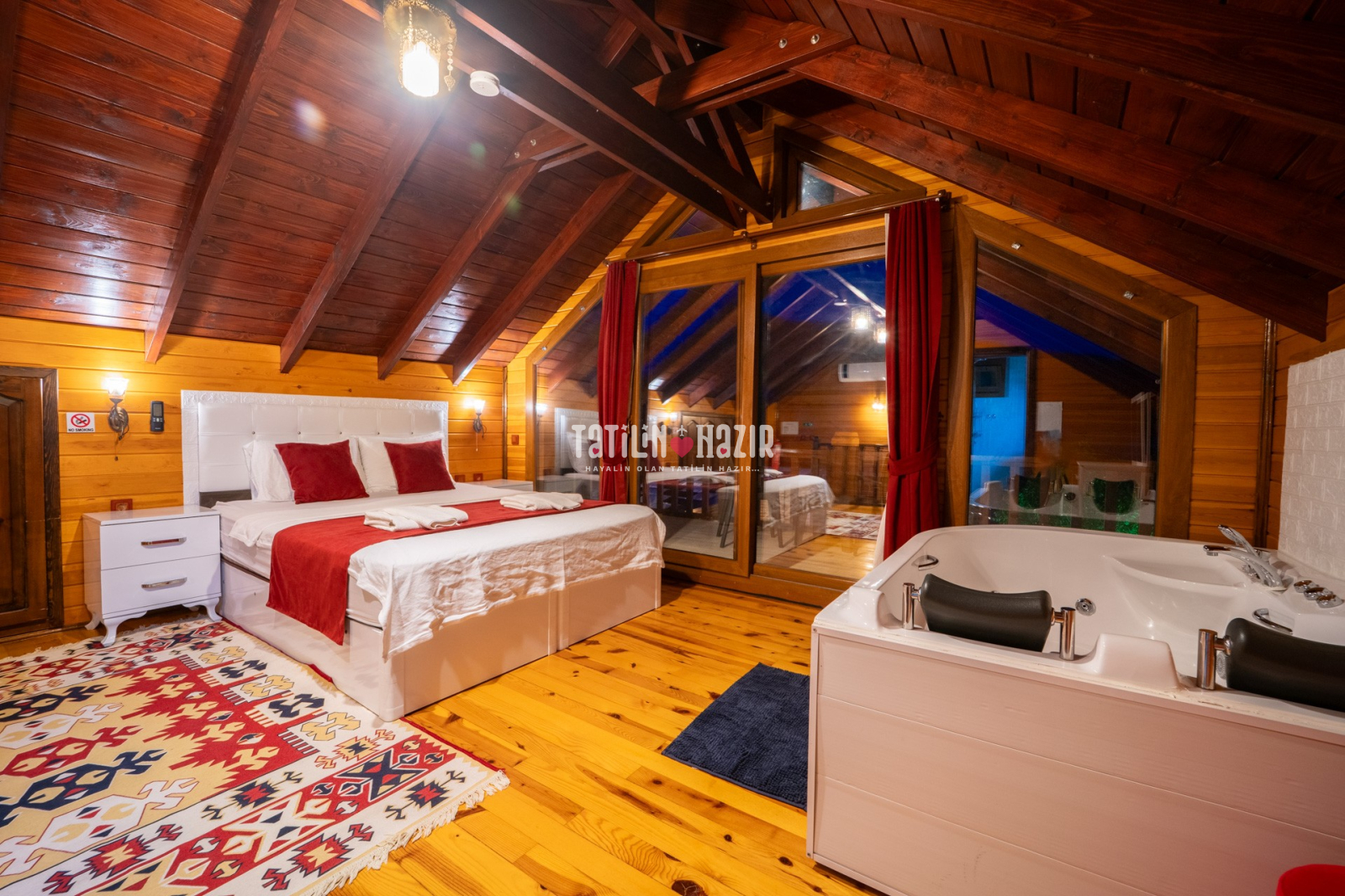 Villalarımız doğayla iç içe bir konumda yer aldığından, düzenli ilaçlama yapılmasına rağmen zaman zaman böcek ya da haşere ile karşılaşılabilir. Ayrıca muhafazakâr villalarımızda yüksek mahremiyet sağlansa da, %100 korunaklılık garantisi verilememektedir. Anlayışınız için teşekkür ederiz.