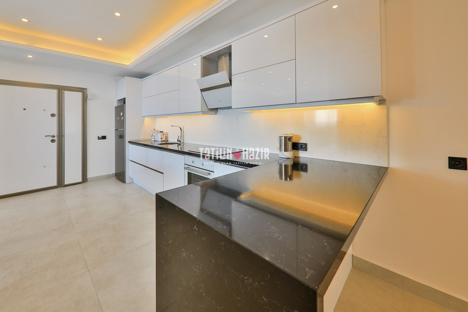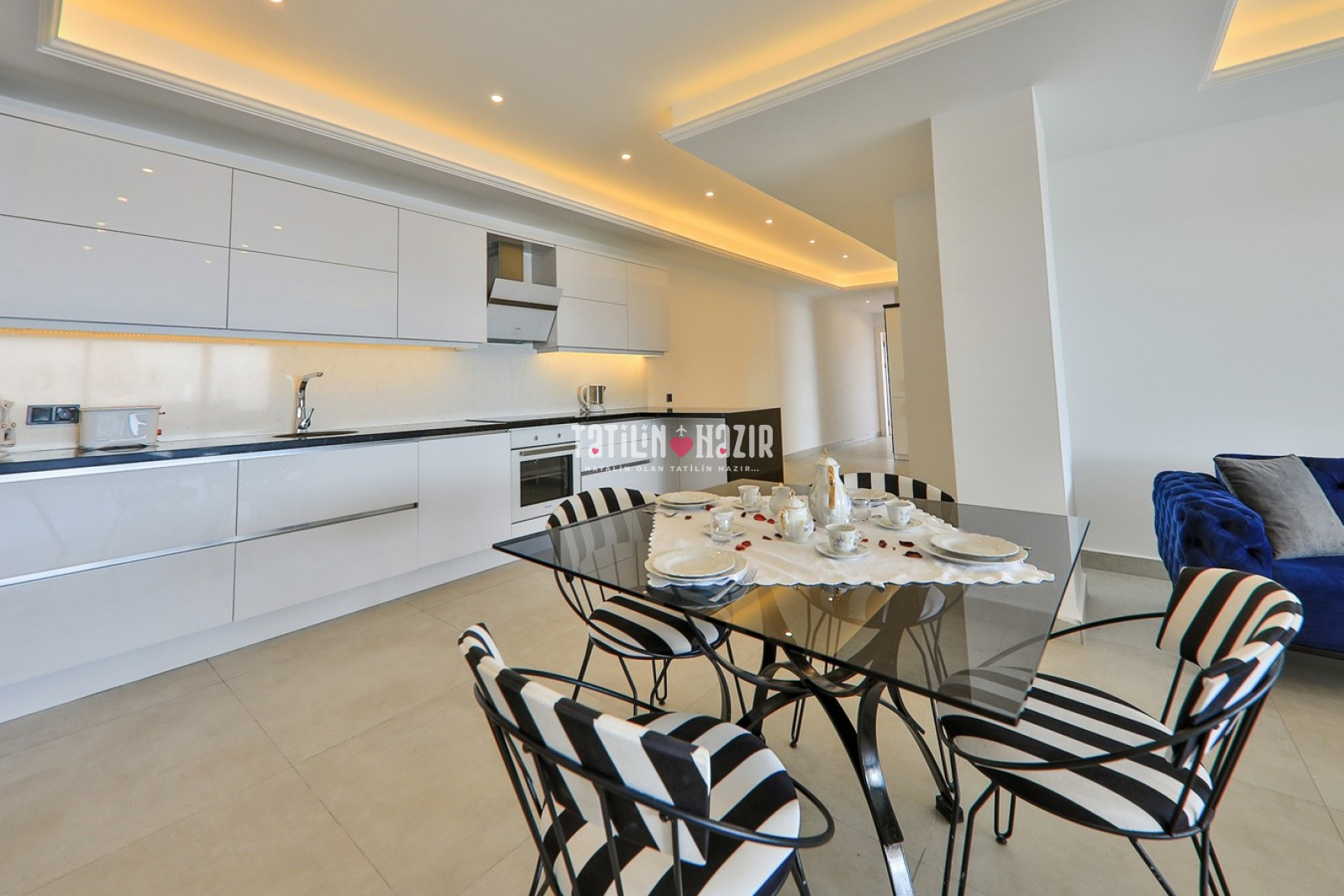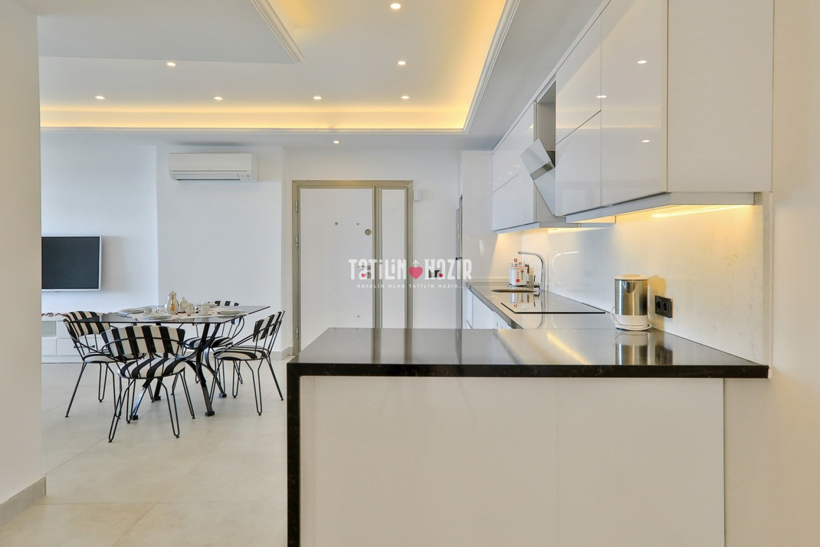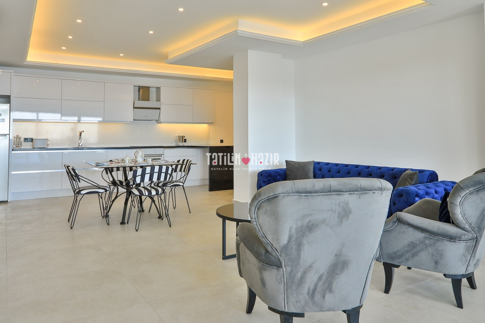 Modern Tasarım: Zarif iç dekorasyon, modern mobilyalar ve kaliteli malzemelerle tasarlanmış geniş bir yaşam alanı.
