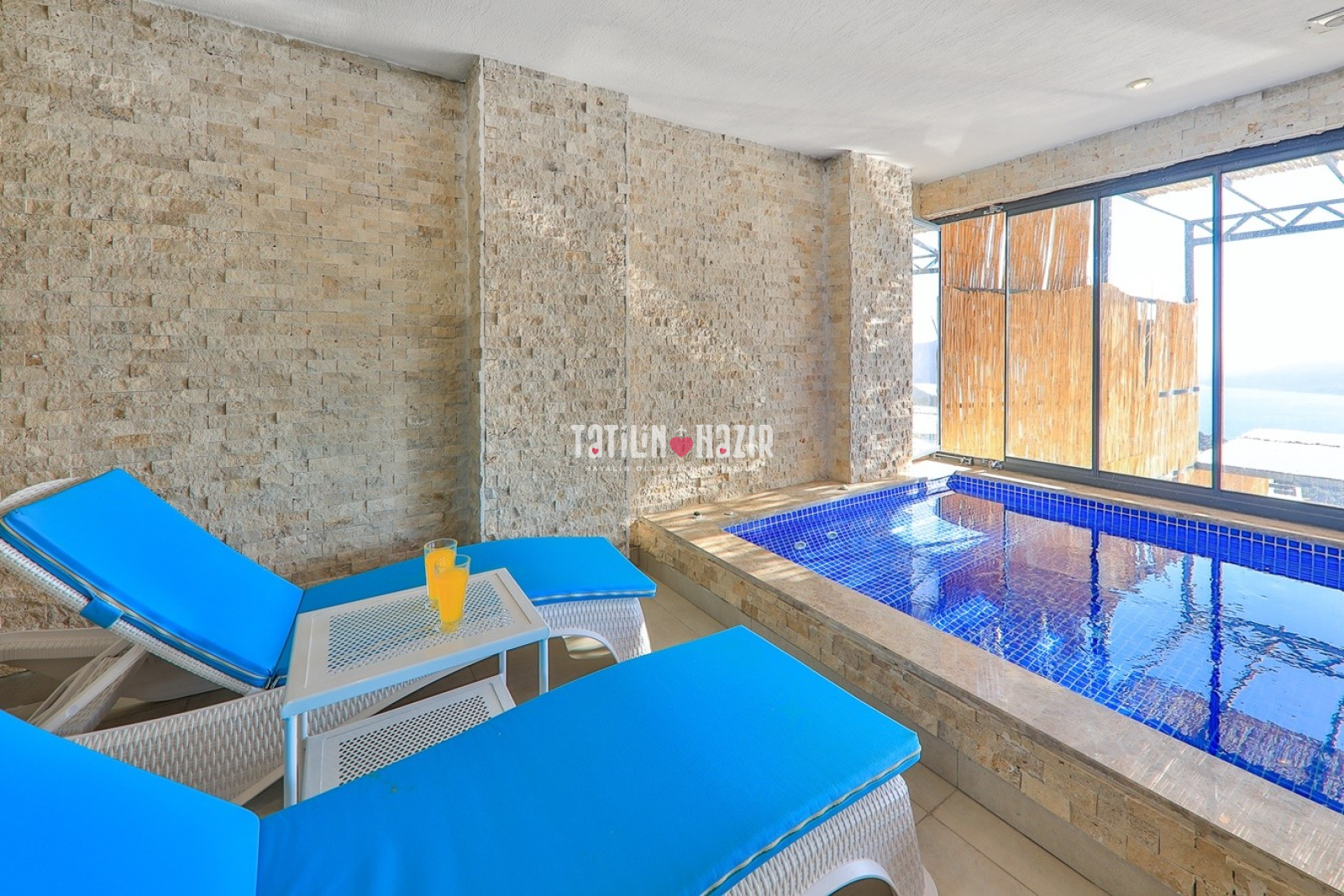 Villamızın kapalı havuzu ısıtmalı olup, misafirlerimizin isteğine göre 1 ekim 30 nisan tarihleri arasında ücretsiz olarak ısı derecesi ayarlanabilmektedir. Diğer aylarda ise haftalık 7500 TLücret karşılığında hizmete sunulmaktadır.