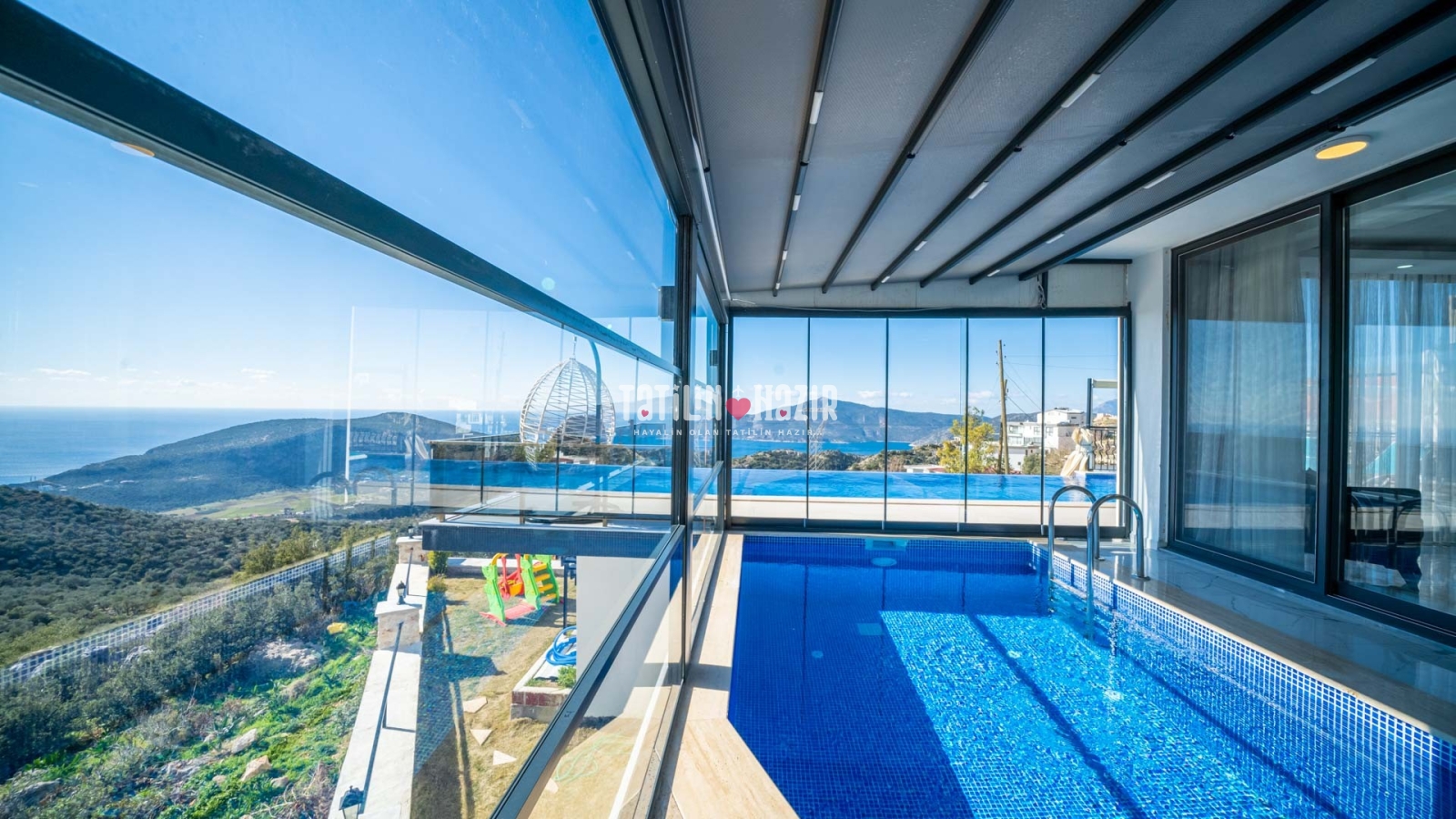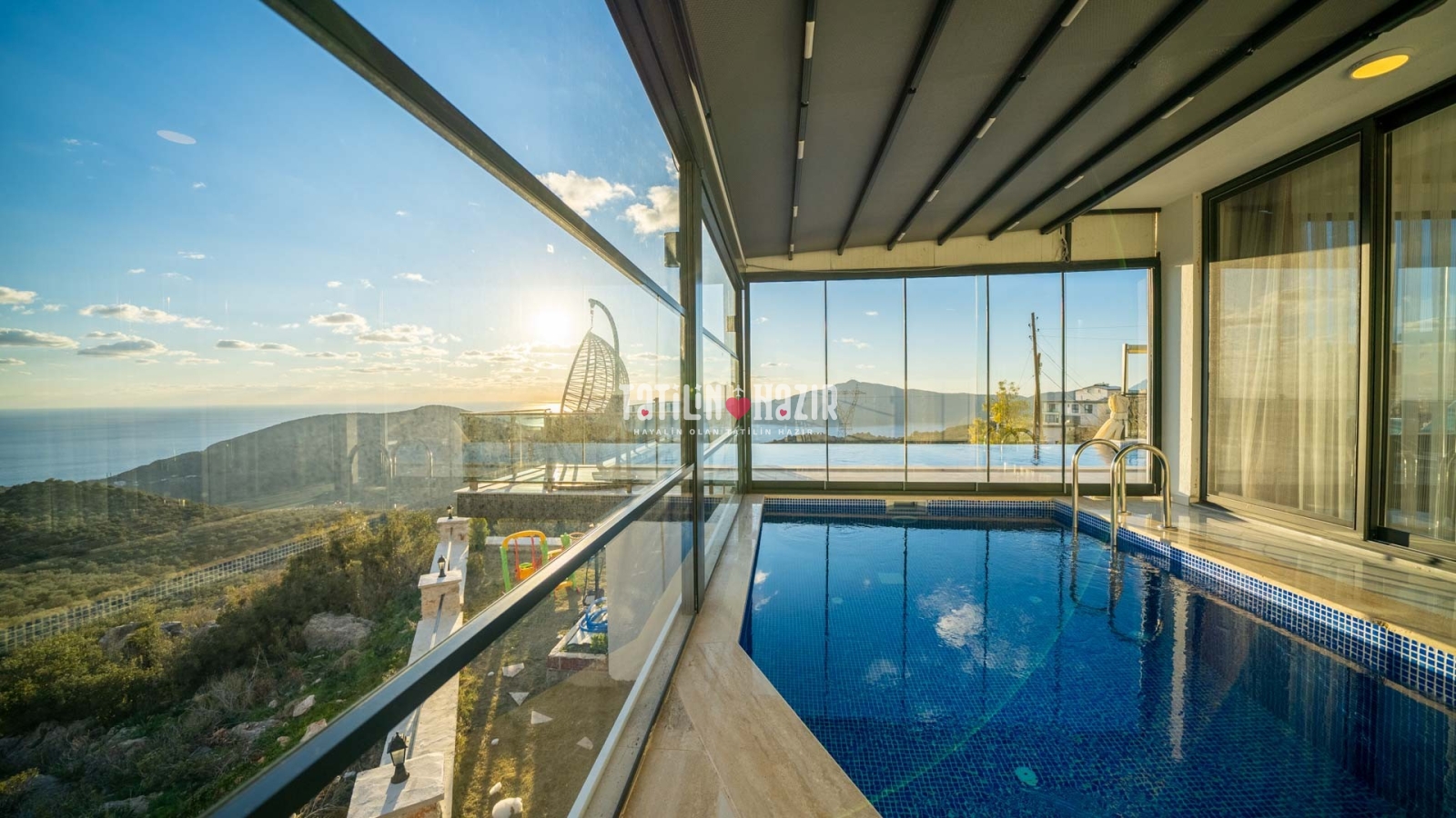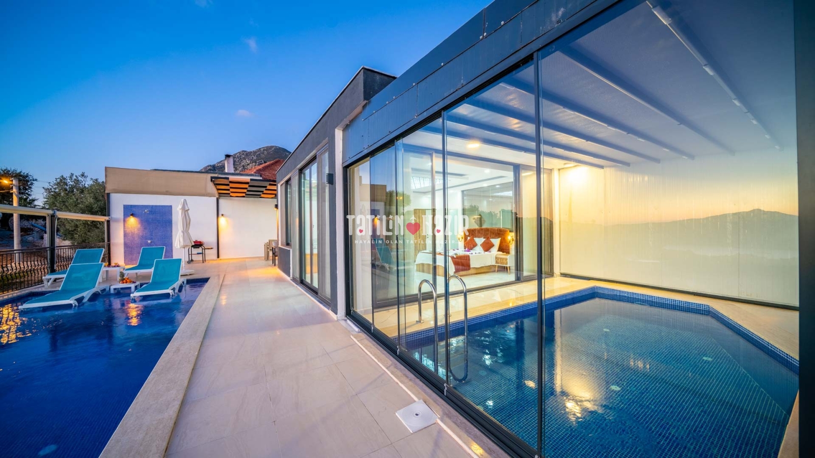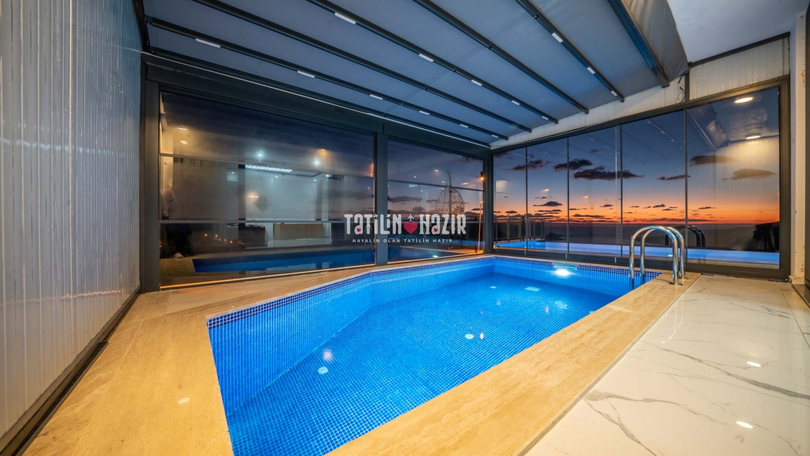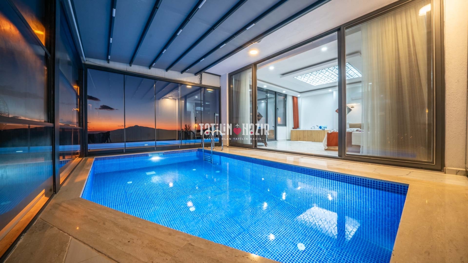 Havuz ısıtma ücreti extra 1000 tl'dir. İç havuzun üst ve yan camları istenildiği taktirde açılıp kapanabilmektedir. .