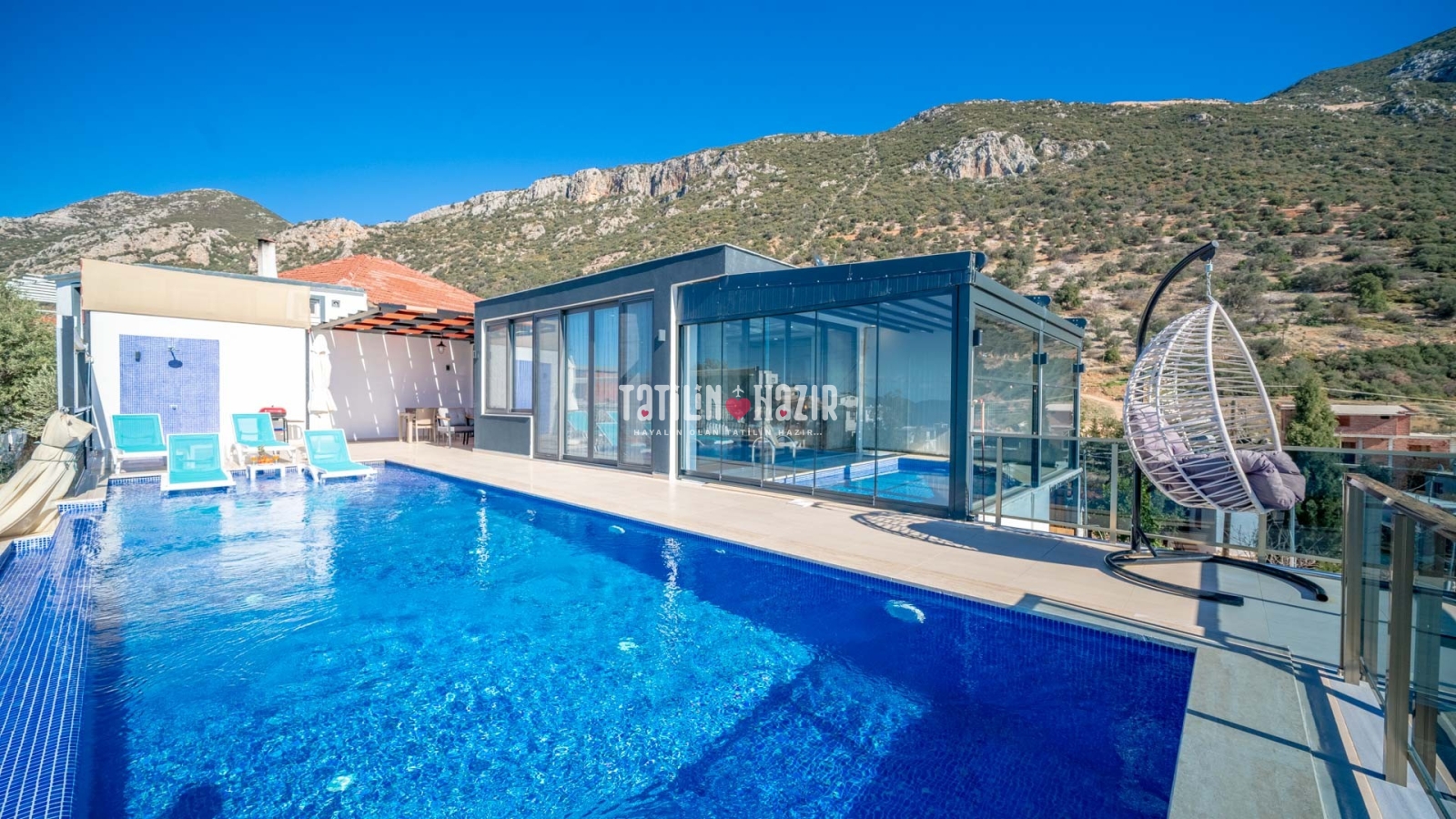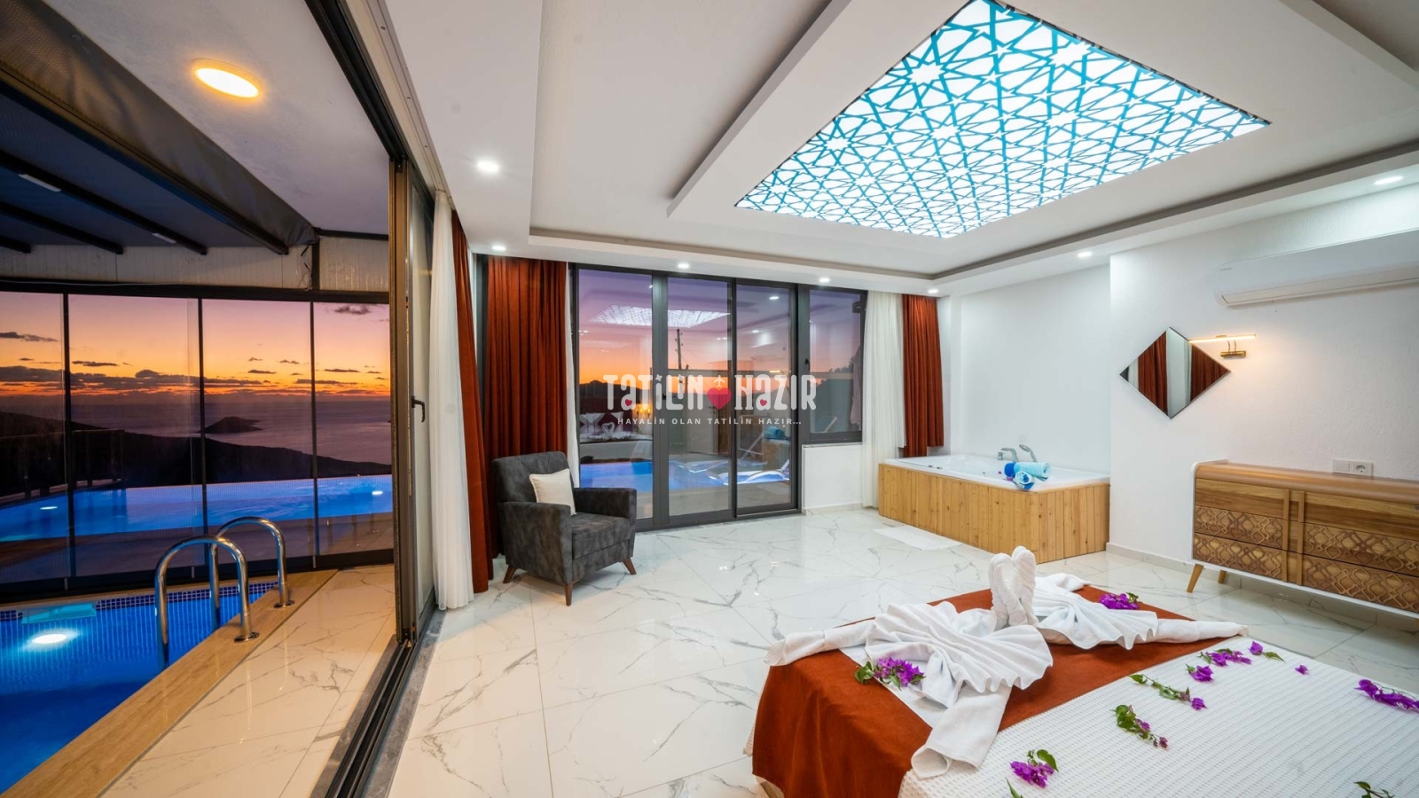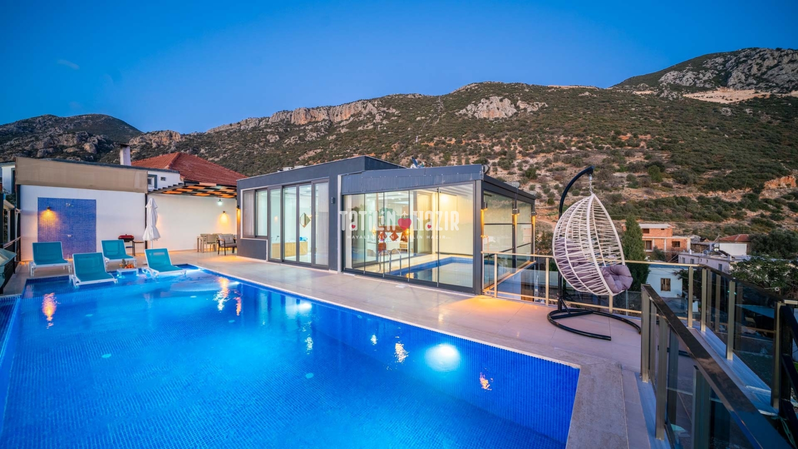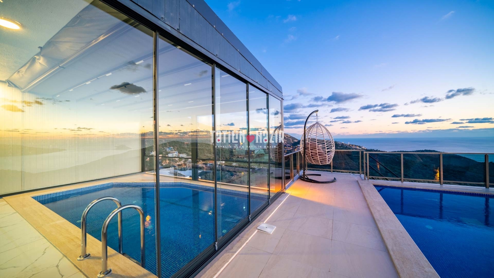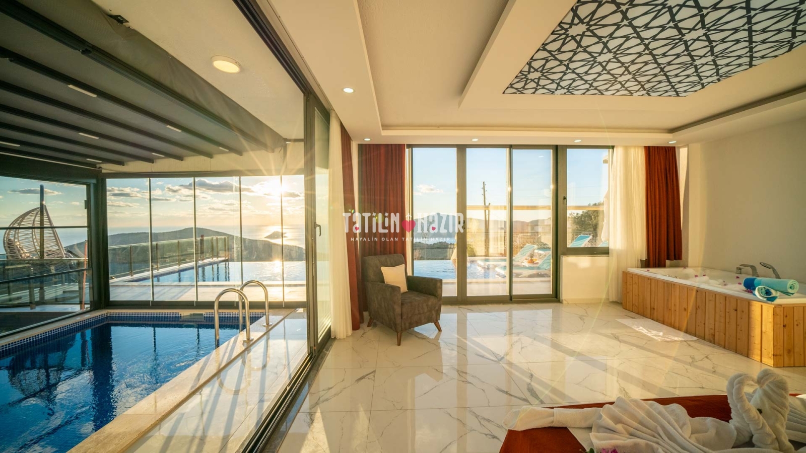 Havuz ısıtma ücreti extra 1000 tl'dir. İç havuzun üst ve yan camları istenildiği taktirde açılıp kapanabilmektedir. .