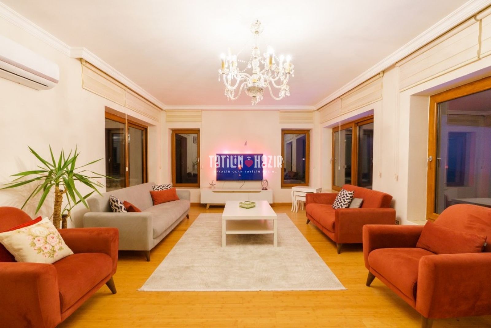 NOT: Villanın girişinde 1+1 konaklama alanı mevcuttur dileyen misafirler gecelik extra 5.000,00 ₺ karşılığında bu alanı da kiralayabilirler.